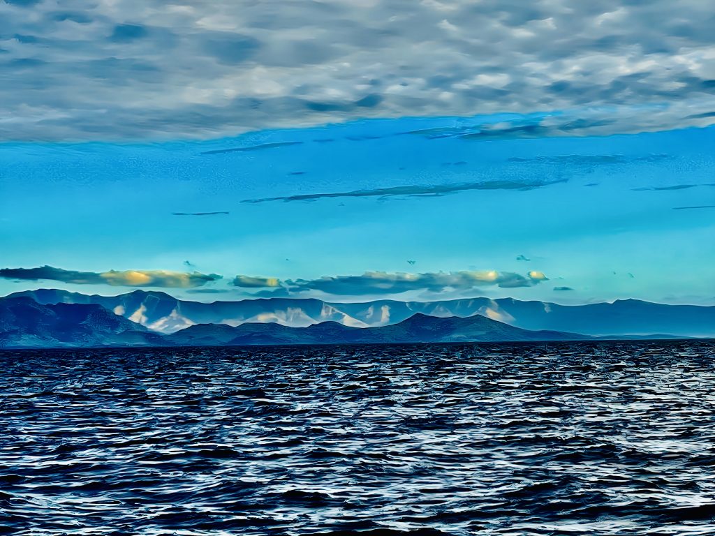 Jetzt ist es 9:30 Uhr, und die Sonne schaut ganz, ganz vorsichtig durch die Wolken hindurch, um die Lage zu peilen. An Bord sollte erstmal alles etwas abtrocknen. Wie gut, dass ich Klaus‘ gestern noch gewaschene Unterhosen die Nacht über nicht habe draußen hängen lassen. Stattdessen war der Salon damit üppig dekoriert. 😆 Nun sind sie aber trocken und weggeräumt. Jetzt schauen wir mal, wie weit wir kommen. Wieviele Seemeilen wir von den 230/240 Meilen schaffen. Gute 2 Tage haben wir geplant. Der Himmel klart auf, der Wind bläst in die richtige Richtung, und wir passen gut auf die vielen Untiefen, Riffe und Inselchen auf, die wir passieren müssen. Die Hauptinsel ist ganz schön lang und hat beeindruckende Küstengebirge.