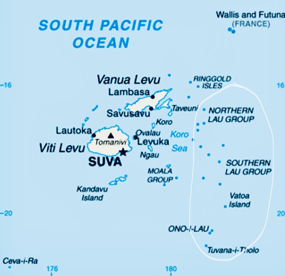 Für uns verläuft der Segeltag gar nicht mal schlecht. Wind und Welle sind einigermaßen mit uns, und unser Screecher zieht ordentlich. Wir sind aus dem Untiefengewusel heraus und müssen nur noch auf möglichen, anderen Schiffsverkehr achten. Da lese ich mich mal eben schnell in die Lau-Gruppe ein. 57 Inseln gehören zu dieser ganz weit im Osten liegenden Inselkette. 30 davon sind bewohnt