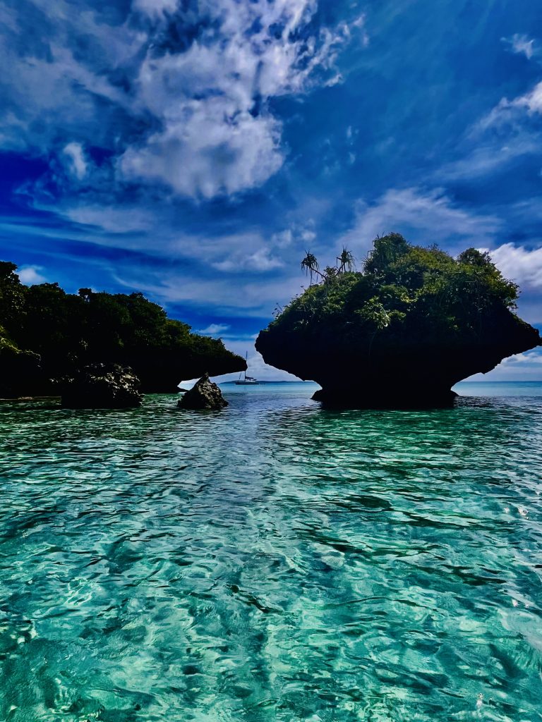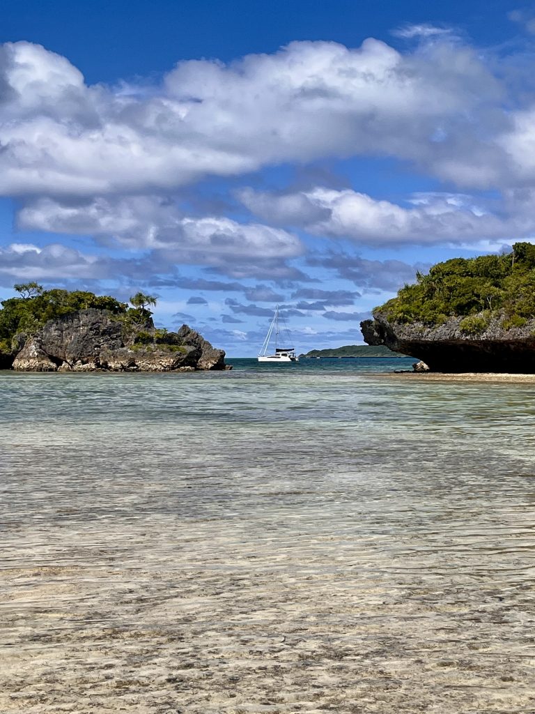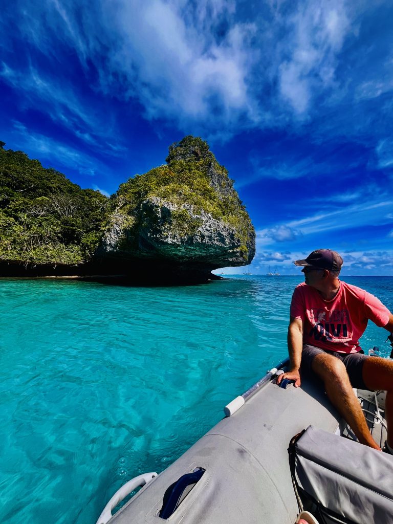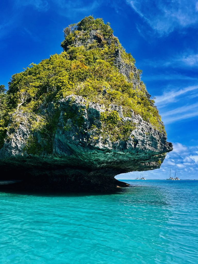 Sogar eine Seawind 1260 ist mit dabei. Sie gehört einem ehemaligen Helikopterpiloten der australischen Luftwaffe. Einsatzorte waren unter anderem Pakistan und Afghanistan. Das müsste somit ein richtig harter Knochen sein.🫡 Er und seine Frau haben vor 8 Jahren die 5. Seawind 1260 gekauft, vercharterten sie und fahren nun selber mit ihr in der Weltgeschichte herum. Wir haben ja die 44. Seawind 1260 und beide sind wir sehr zufrieden mit unseren Booten. Woher wir das alles wissen? Wir sind mal eben bei ihnen vorbeigefahren. Sie gehen jetzt im Pass tauchen und wir fahren kurz noch bei ein paar schönen Felsformationen vorbei.