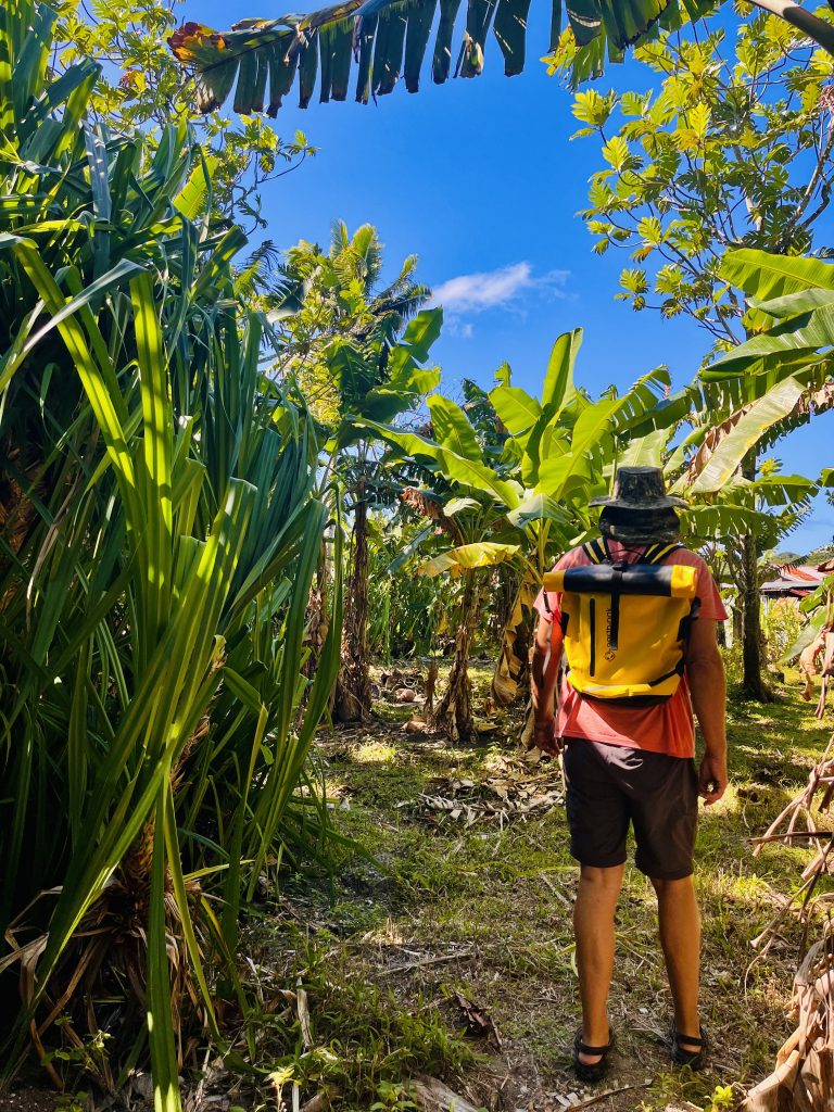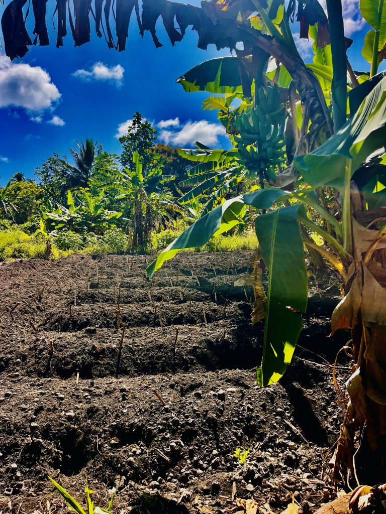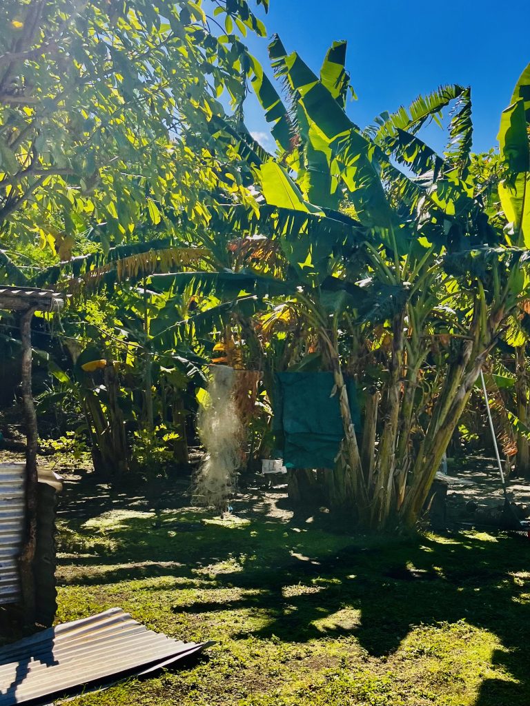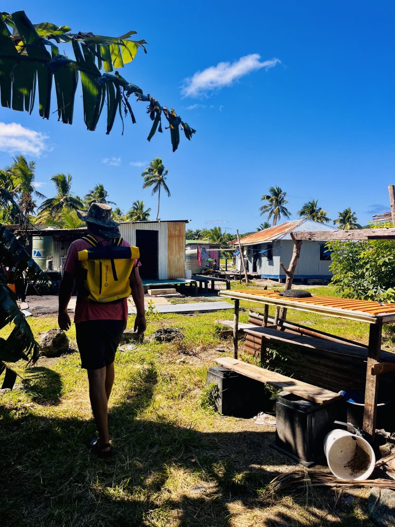 die bei Flut das immer höher steigende Meerwasser aufnehmen sollen. Strom und fließend Wasser gibt’s nicht. Strom kommt nur aus kleinen Solarpanelen und Trinkwasser nur von oben. Das, was die Natur ihnen gibt, steht ihnen zur Verfügung. Sie fangen es in Zisternen auf. Sie spricht mit vielen Frauen, die aus ihren Hütten schauen, Bula, Bula erklingt es allenthalben. Wir werden neugierig aber freundlich beäugt. Gerade mal 60 Menschen leben hier. Hütten gibt es aber deutlich mehr. Nicht wenige stehen leer und sind verbarrikadiert. Aber sie haben einen Kindergarten, der Leiterin begegnen wir sogar und eine Grundschule für die ersten 8 Schuljahre. Danach müsste man in die Hauptstadt übersiedeln, nach Suva. Das ist weit, aber viele Familienmitglieder leben verstreut. So leben ihre Eltern in Suva und arbeiten dort. Sarah‘s Tochter, 9 Jahre, könnte dann zu ihren Großeltern übersiedeln, wenn es mal soweit ist. Jetzt führt uns Sarah zu einem kleinen Anbaufeld. Sie hatte mitbekommen, dass wir gerne etwas Frisches gekauft hätten und bietet uns Bananen an. Ja, gerne❣️