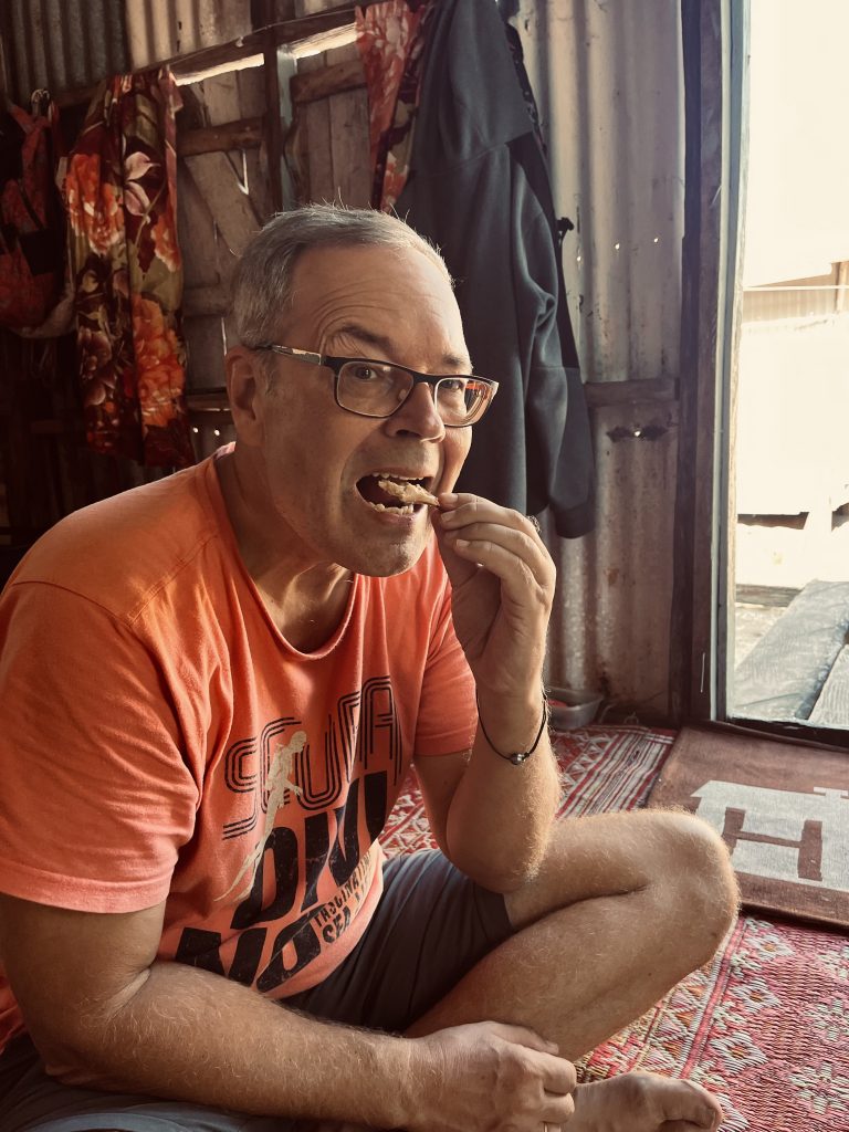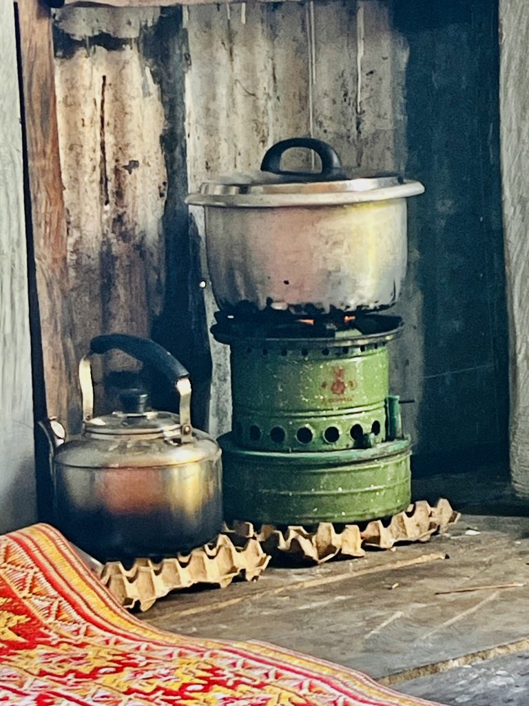 Sie wird durch den heißen Wasserdampf sterben, denn Wasser ist kostbar! Nein, sie schreit währenddessen nicht, auch, wenn das Prozedere mir recht brutal erscheint. Wir sitzen stattdessen auf dem Boden und bekommen Tee, Kekse und Erdnusscreme.