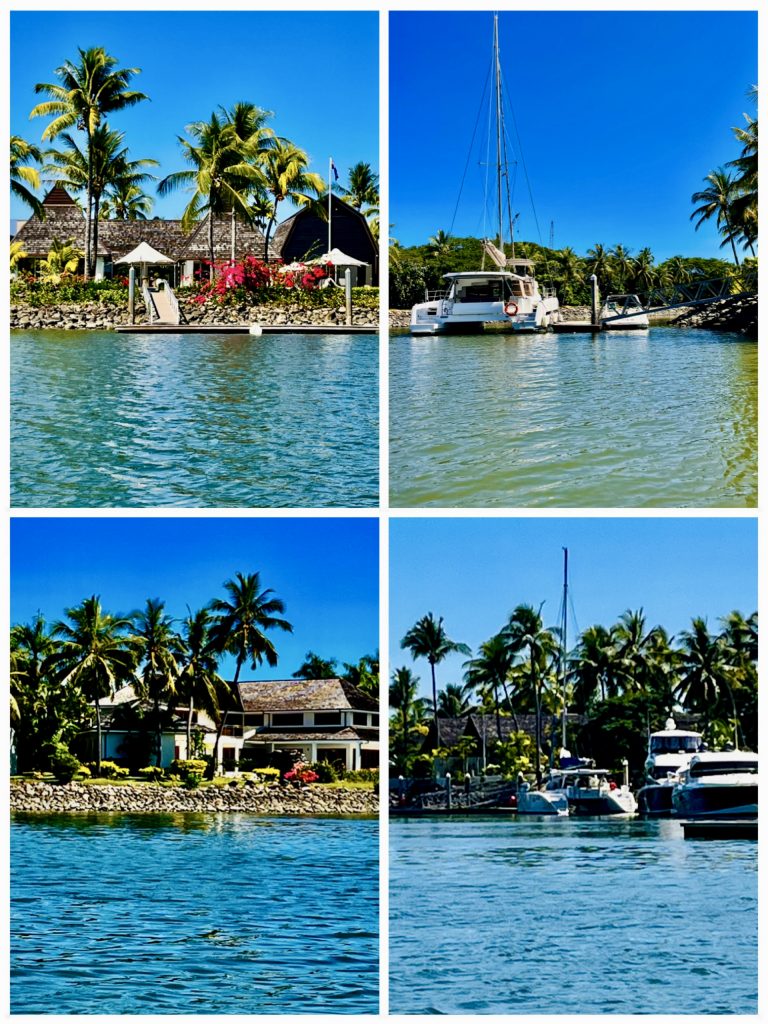 Die Anlage erinnert uns ein Stückchen an das Marinagelände auf den Seychellen. Da gab es auch viele hübsche Häuschen mit eigenem Steg und mancher Yacht davor.