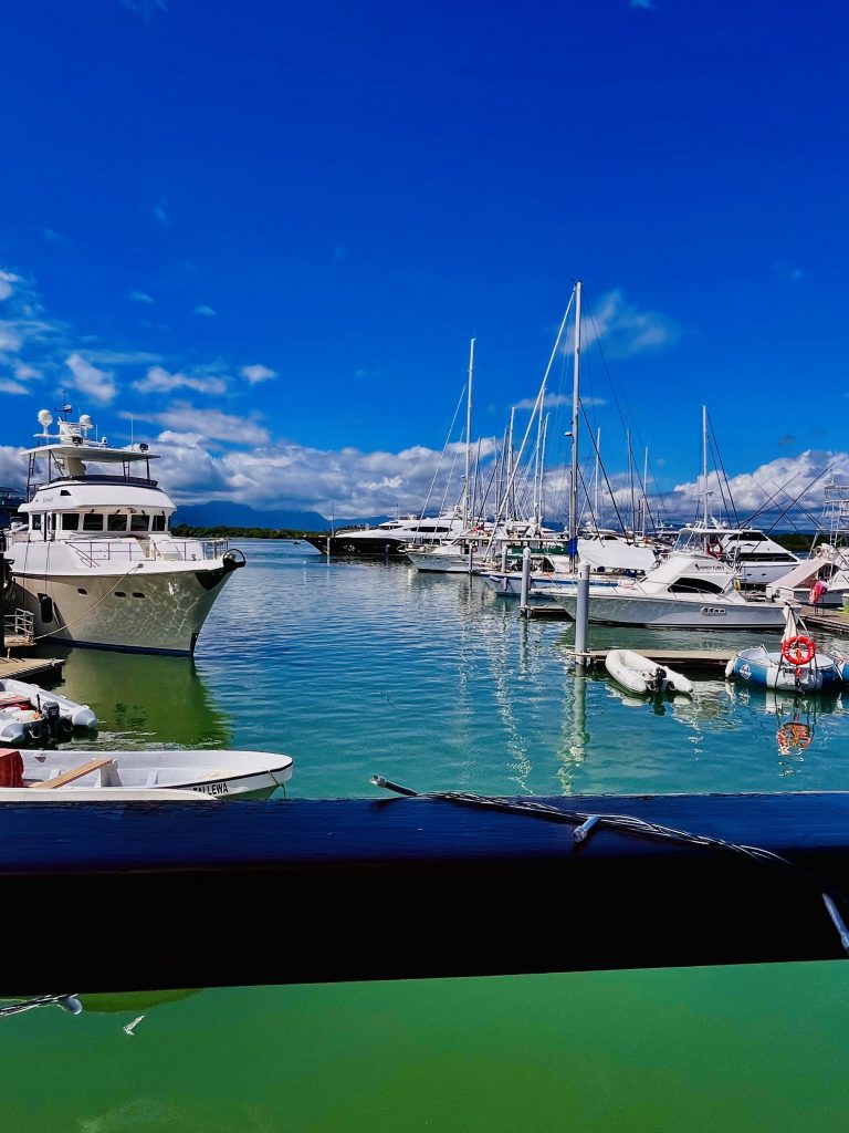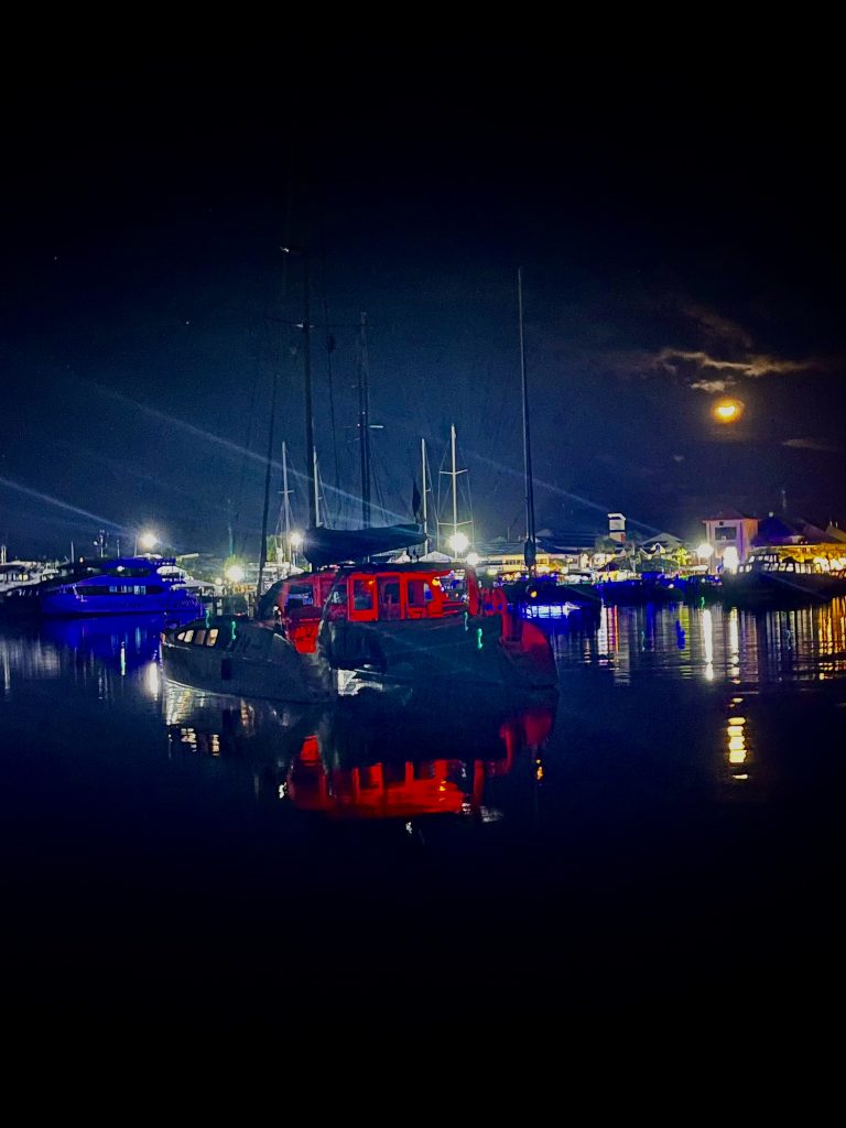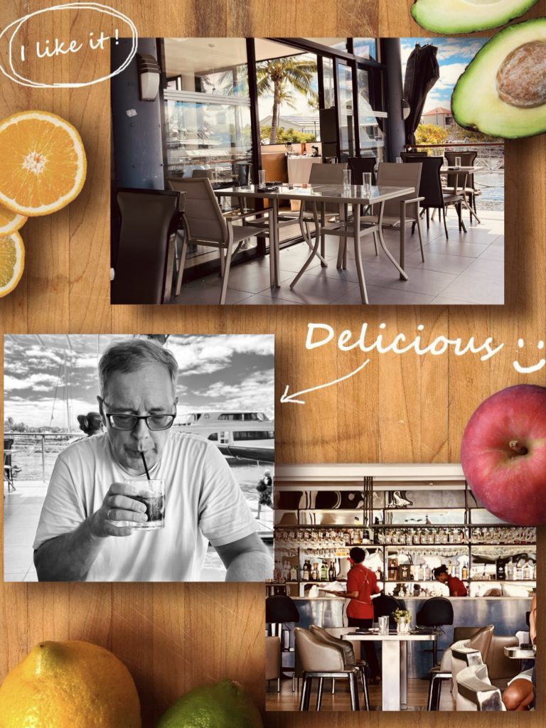 Zuerst holen wir uns die benötigten Coins für Waschmaschine und Trockner aus dem Marinabüro, dann betreten wir den ordentlichen, aber schwül-heißen Waschraum. Auweia, was ist denn hier für ein Andrang? Mehrere Leute und riesige Seesäcke mit Wäsche warten auf freie Maschinen. Hmm 🤔. Nach einem Check der Lage notieren wir im Kopf, 3 große Waschmaschinen und 3 große Trockner stehen zur Verfügung. Jeweils eine/einer davon ist frei. Jippie 🥳. Doch eine der anwesenden Personen klärt uns auf. Die beiden freien Maschinen sind kaputt. Ach, so ein Mist! In einer der beiden verbliebenen Waschmaschinen liegt fertig gewaschene Wäsche, aber kein Wäschebesitzer ist zugegen. Wir warten hin, wir warten her, dann nehmen wir die Wäsche kurzerhand heraus, deponieren sie im kaputten Trockner und stopfen unsere Wäsche hinein. Coin rein und los geht’s. Circa 45 Minuten haben wir jetzt Zeit, entfliehen der schwül-warmen Location und gehen shoppen. Pünktlich stehen wir wieder auf der Matte, es ist jetzt noch voller geworden und wir müssen sehr lange auf einen freien Trockner warten. Schwitz, trief 🥵. In der Zwischenzeit jonglieren alle Anwesenden um die immer noch feuchte Wäsche des unbekannten Besitzers herum, und irgendwann können auch wir unsere Wäsche trocknen. Nun haben wir circa 1 Stunde Zeit und gehen im besten Fischlokal der Insel, Fisch essen 🐠🐟. Es liegt nur gute 10 Schritte vom Waschsalon entfernt, praktisch, aber auch nicht viel mehr Schritte von der Tanke entfernt, weniger praktisch.