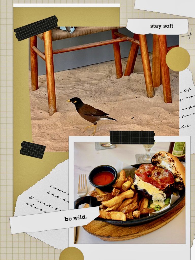 Aber nicht nur wir Menschen finden es hier herrlich, auch diese indischen Hirtenmainas lieben es hier. Ihnen sind wir schon oft begegnet. Sie sind sehr schlau, gesellig bis hin zu aggressiv, und verschiedenste Laute kommen aus ihrer Kehle. Hier wurden sie von den Engländern mitgebracht, um die Insektenpopulationen auf den Zuckerrohrplantagen klein zu halten. Folglich gehören sie eigentlich nicht hierher, sind eine Invasion und bedrohen mittlerweile die hiesige, angestammte Vogelwelt beträchtlich. Sie sind Allesfresser und bedienen sich auch gerne mal bei den Eiern und Küken anderer Vögel. Na super! 😬 Hat der Mensch ja wieder einmal toll hinbekommen. Manch heimische Art ist schon fast verschwunden. Wenn hier ein Tisch verlassen wird, nehmen schnell mal 10, 12 Vögel Platz. Das wäre jetzt absolut gar nichts für Marlene, meiner Mitschwiegermutter. 😝 So, nun verlassen wir dieses schöne Resort durch den Haupteingang…