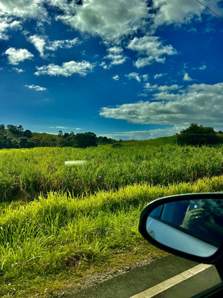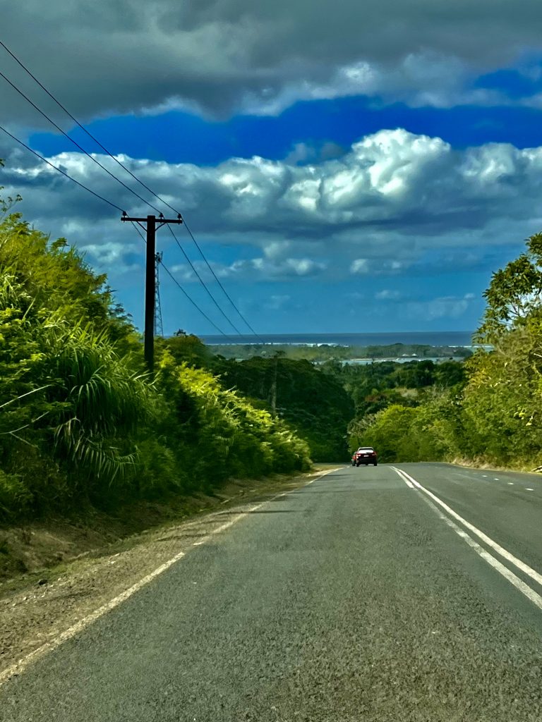 Zu allererst nehmen wir mal den Leihwagen von unserer indischen Vermieterin in Empfang. Es ist zehn Minuten vor Acht und die Übergabe der Papiere, Zahlung und kurze Einweisung in das Auto gehen zügig und unproblematisch über die Bühne. Wir fahren dann mal los. Achtung, Linksverkehr beachten! 1 1/2 Stunden fahren wir Richtung Suva, also durch bekanntes Terrain.