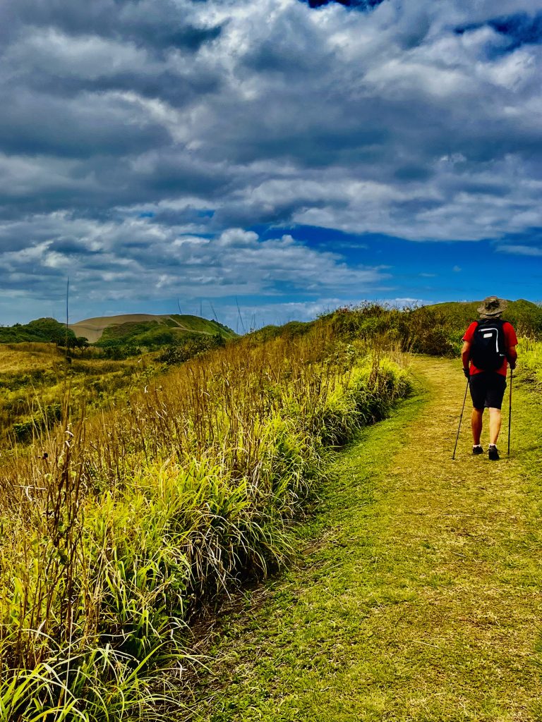 An der Rezeption empfängt uns ein hochmotivierter, sehr netter Ranger, der uns zu allererst den geringen Eintritt von 3,- Euro/Person abnimmt und uns dann eine dezidierte Einweisung in die möglichen Wanderungen gibt. Ganz klar, wir wollen die längere Tour machen, für die etwa 2 Stunden veranschlagt werden. Gaaanz genau zeigt er uns auf einem großen Tableau, wie wir laufen müssen, durch welche Zonen wir kommen, wo wir welche Zeichen finden und wo wir auf Weggabelungen achten müssen. Ich glaube, das sollten wir schaffen. Und wenn nicht, haben wir seine Handynummer und er kommt uns retten, grins. 😊 Dann wollen wir mal in die Gänge kommen, bevor die Sonne vollends aus der Deckung kommt.
