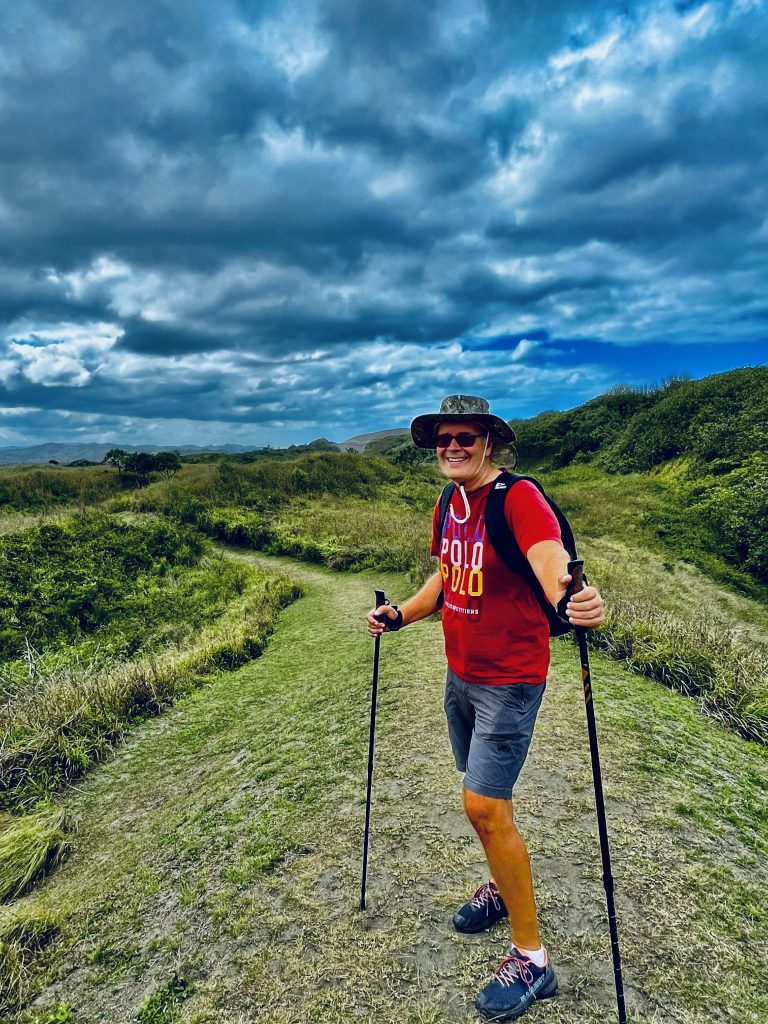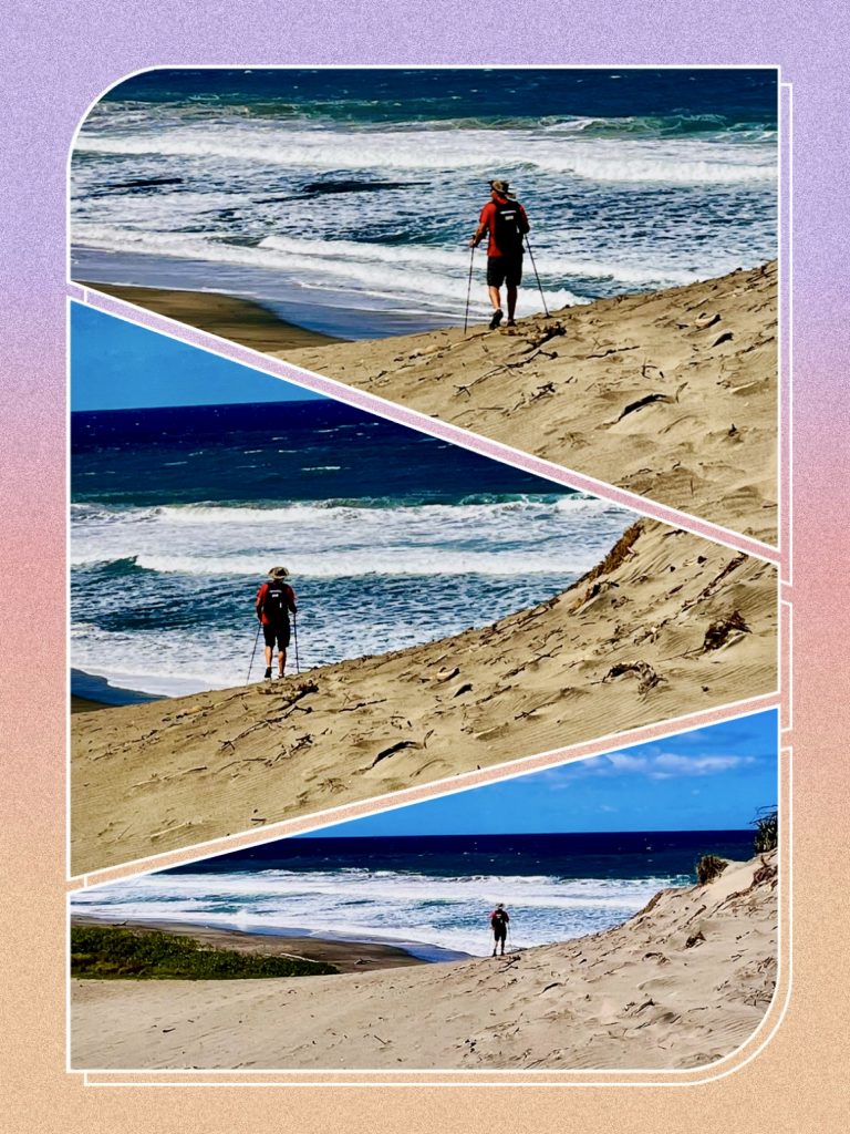 Hier fegt der Wind von hinten, bläst mir andauernd den Hut nach vorne und sandstrahlt meine Waden. 🤭
