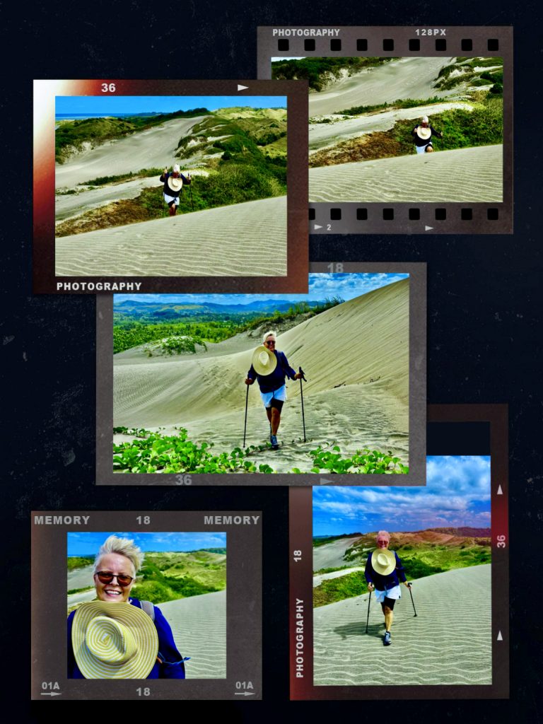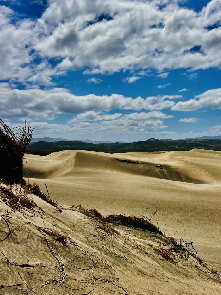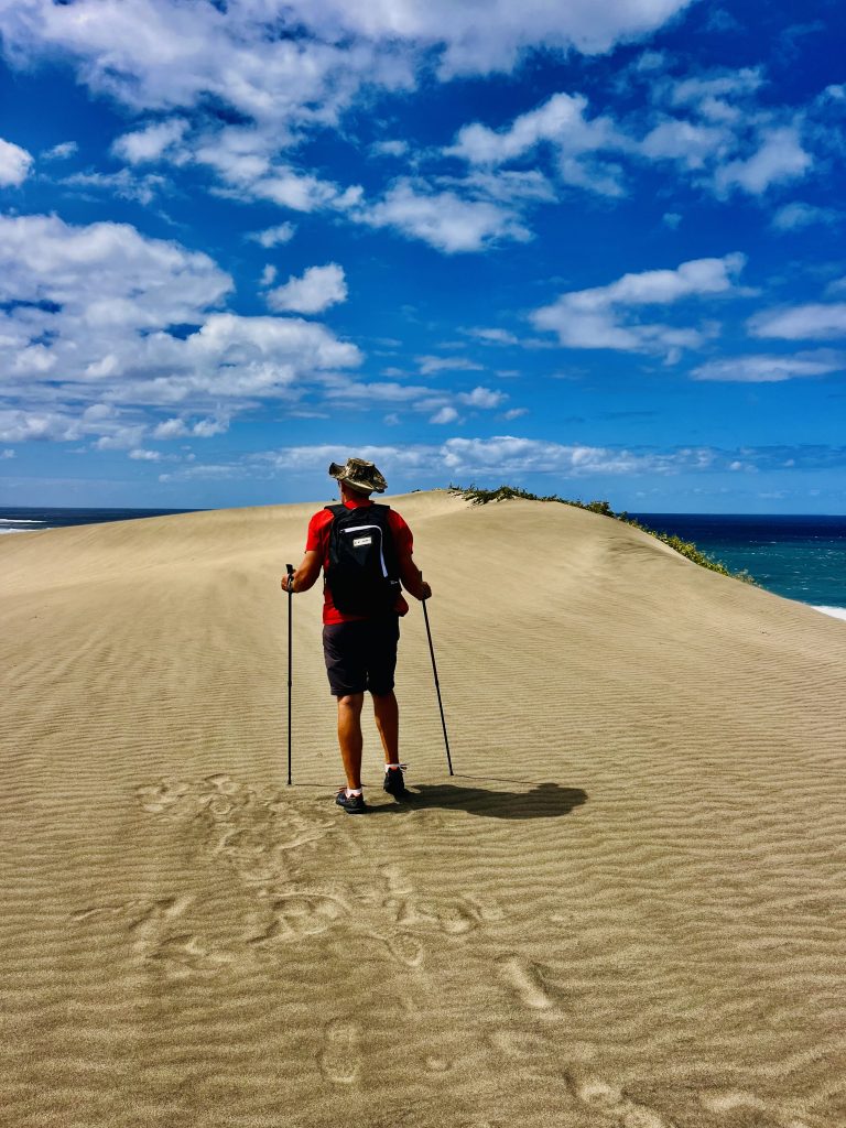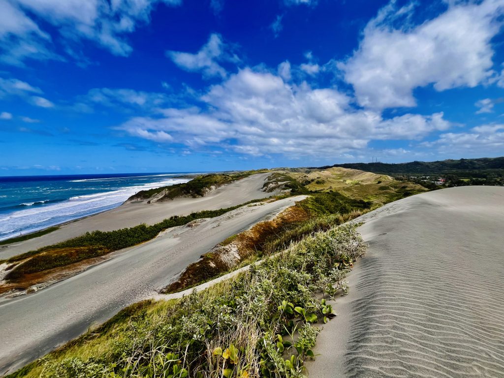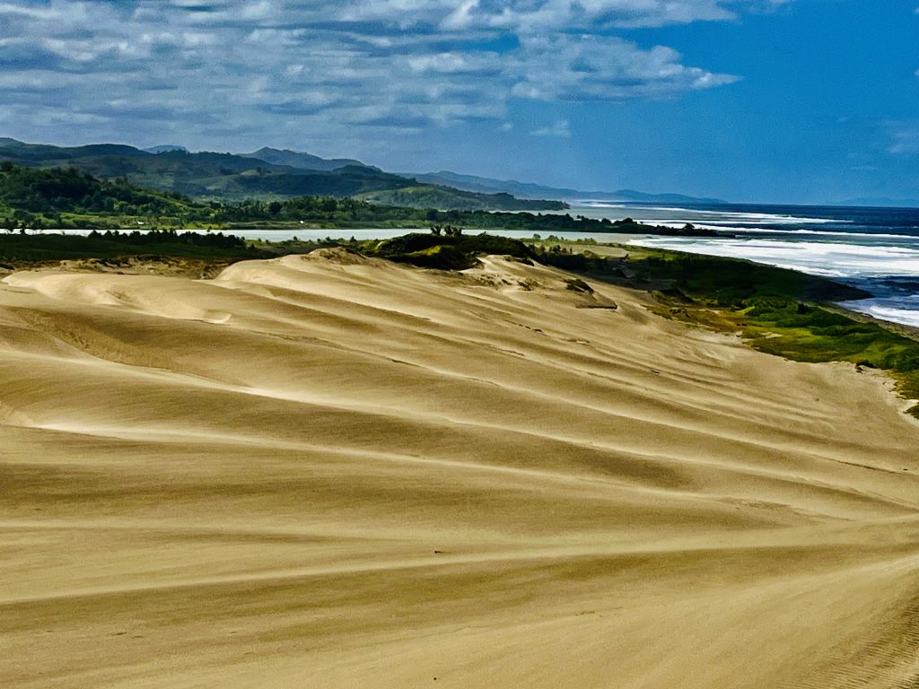 Sie wandert nicht schnell, jedes Jahr nur ein ganz klein bisschen. Aber dadurch wird über die Zeit immer mehr Vergangenheit freigelegt. Unter uns befinden sich nämlich ein Dorf der ersten Bevölkerung Fidschis. Überreste der 1.000 vor Christus siedelnden Lapitas kommen mehr und mehr ans Tageslicht. Töpferscheiben, Pfeilspitzen, Grabgebeine konnten schon geborgen werden. Davor war dieses Gebiet von tropischem Regenwald bedeckt. Die Lapitas holzten mehr und mehr ab, die Gegend versandete, das Meer brachte immer weitere Sandmassen an Land, und der Wind tat sein Übriges.