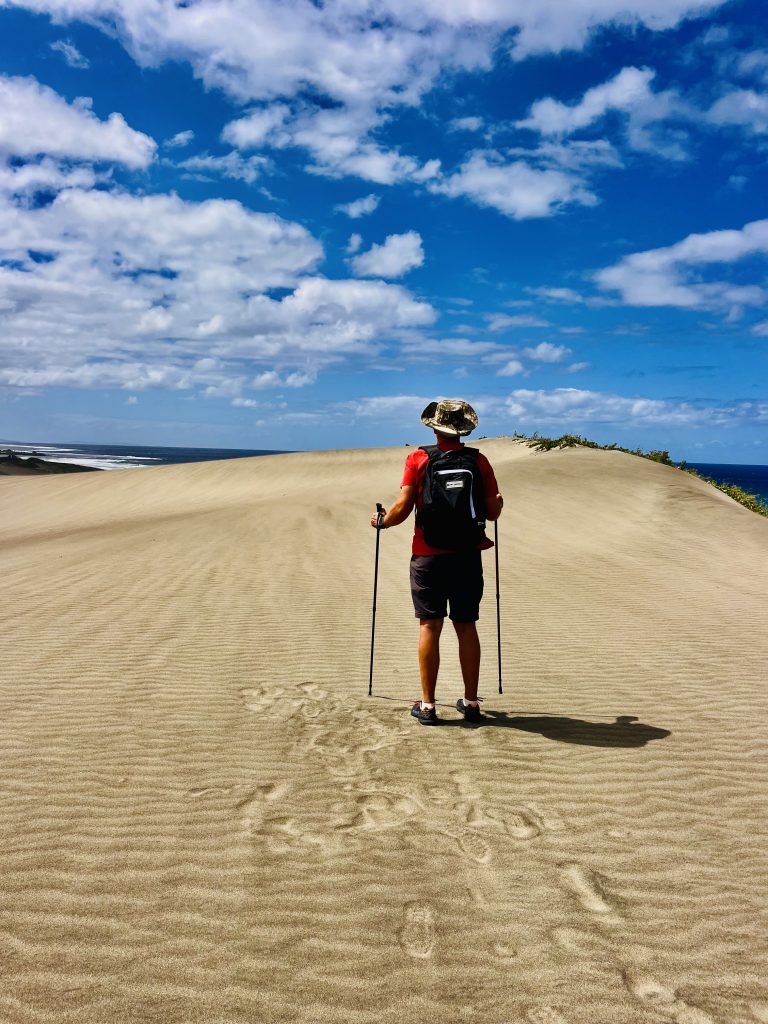 Klaus ist von der Größe der Dünen schwer beeindruckt. So dolle hatte er sich diese Landschaft hier gar nicht vorgestellt. Und dabei kommen ja noch ganz fantastische Blicke!!!