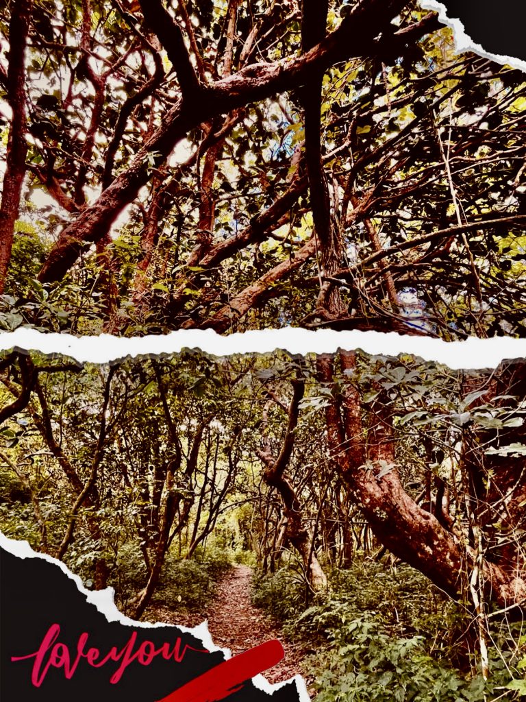Dann geht es durch einen kleinen Trockenwald. Doch zuvor trennen sich der kurze vom längeren Weg.