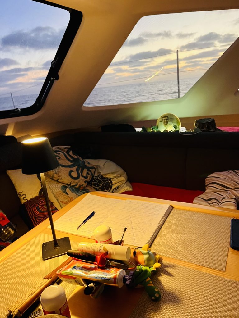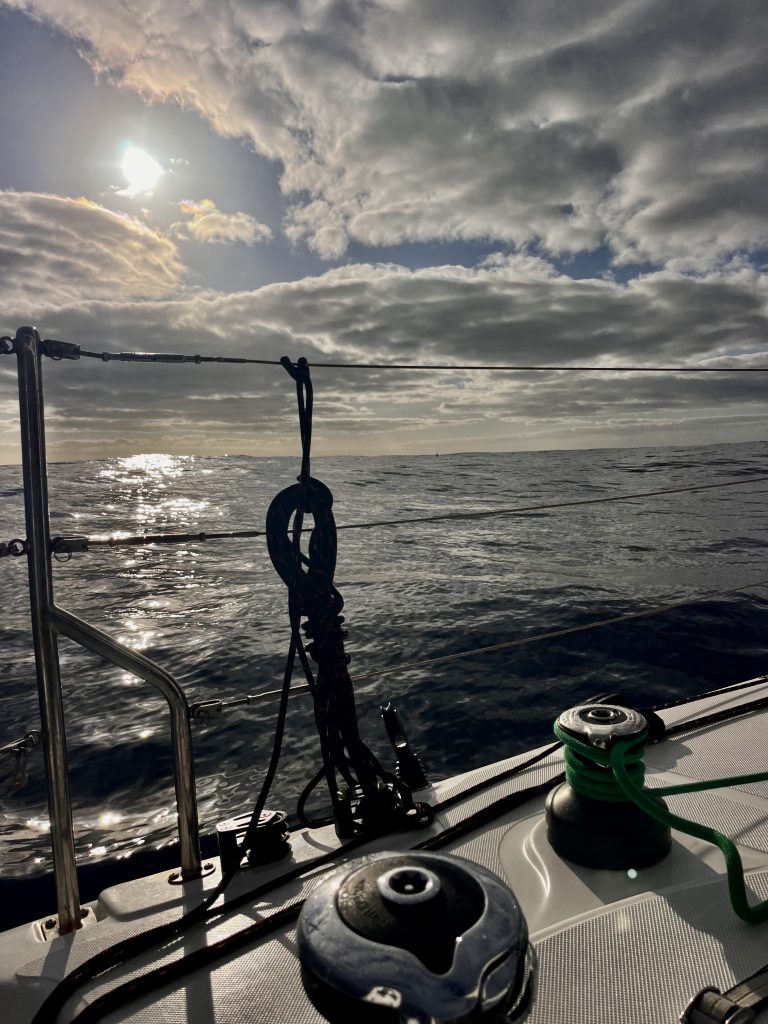 Die Nacht verläuft ausnahmslos ruhig. Beide wechseln wir uns gut im Schlafen und Nachtwachen ab. Am Morgen ist der Himmel erstmal bewölkt und grau. Doch mit Sonnenaufgang löst sich sämtliches Gewölk in Luft auf. Wir motoren mit 4 Knoten sachte voran, das Jib hilft ein wenig und der Wind wispert nur mit sanften 5 Knoten. Bald werden wir auf Hoch 3 treffen.