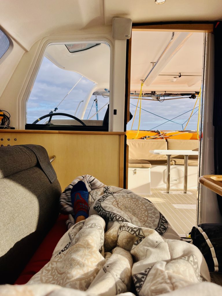 die Sonne und die Entspannung. Doch laut Wetterprognose bekommen wir vermutlich zum Abend wieder höhere Wellen. Ausläufer des alten Tiefs können sich zwischen den beiden Hochs hindurchmogeln. Da lässt uns der alte Tasmane wohl doch noch nicht ganz in Ruhe. 😕