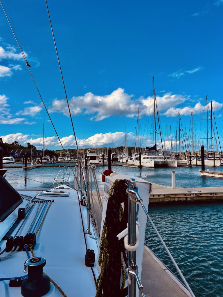 Und? Geht noch was? Sind wir noch in der Lage unseren ersten Landgang zu machen? Neuseeländischen Boden zu betreten? Wir raffen uns auf und laufen los. Vorbei an vielen Gewerken und Bootsservices bis zum kleinen aber feinen Supermarkt. Was kaufen wir ein? Mayonnaise? Nein! Toastbrot, Butter, Käse, Aufschnitt, Blumenkohl, Möhren, Zwiebeln und….. Schokolade. 😊 Auf dem Rückweg werfen wir noch einen Blick in die Waschräume und Duschen und in den Waschsalon. Alles ist tippitoppi, neu und sehr modern. Im Waschsalon stehen viele, riesige Maschinen und Trockner. Das wird ja dann demnächst ein gechillter Waschgang, für die Wäsche und für uns. Zurück an Bord, mummeln wir uns in unsere Decken, alles ist klamm und kalt, und zittern uns warm. Eine Folge Fargo wird noch geschaut, jetzt wieder in besserer Bildqualität, denn wir sind nun wieder onshore. Der Strom ist allerdings noch unser Engpass, denn um an den Landstrom angeschlossen werden zu können, brauchen wir ein sogenanntes “EWOF”. Ein was? Ein Zertifikat über den einwandfreien Zustand unseres elektrischen Systems an Bord. Pah, was es nicht alles gibt. Dafür müssen wir einen Elektriker beauftragen, der Yuti überprüft und uns dann hoffentlich dieses ominöse EWOF erteilt. Heute aber nicht mehr! Darum kümmern wir uns dann morgen.