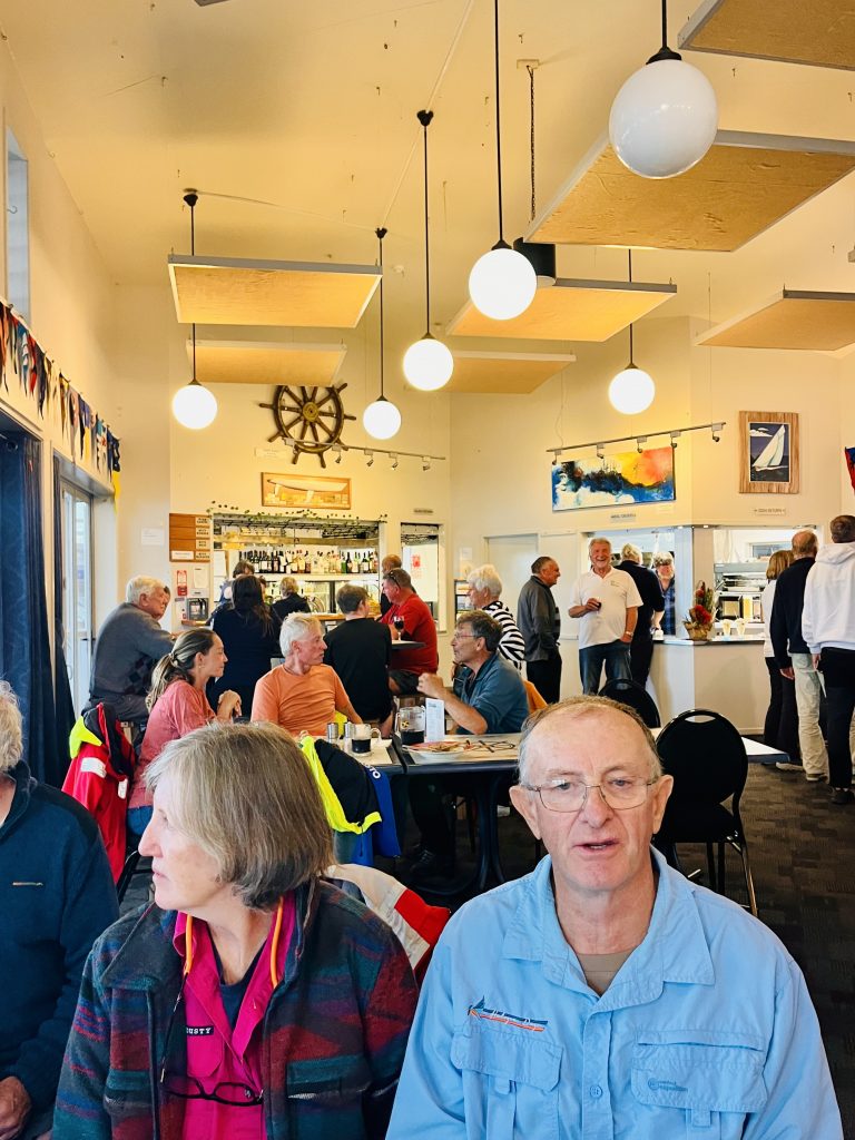 Übrigens, wir haben Nachbarn bekommen, zur Linken. Ein australisches Paar, Rusty and Tippy, unser Alter, auch mit nem Kat. Und der Captain ist der, der Yuti knackend in die Box manövriert hat. 😜 Sie treffen sich mit anderen Neuankömmlingen im Marina Café um 17:30 Uhr. Wir sollten doch auch mitkommen. Klaro, machen wir. 👍 Das wird dann auch ein richtig großes Hallo! Alle Besatzungen der letztens angekommenen Boote sind hier. Engländer, Australier und wir zwei Deutsche. Es wird viel gebabbelt, alles verstehen wir nicht, insbesondere wenn sie sich untereinander unterhalten und schnell in ihrem Slang sprechen… 🤪.