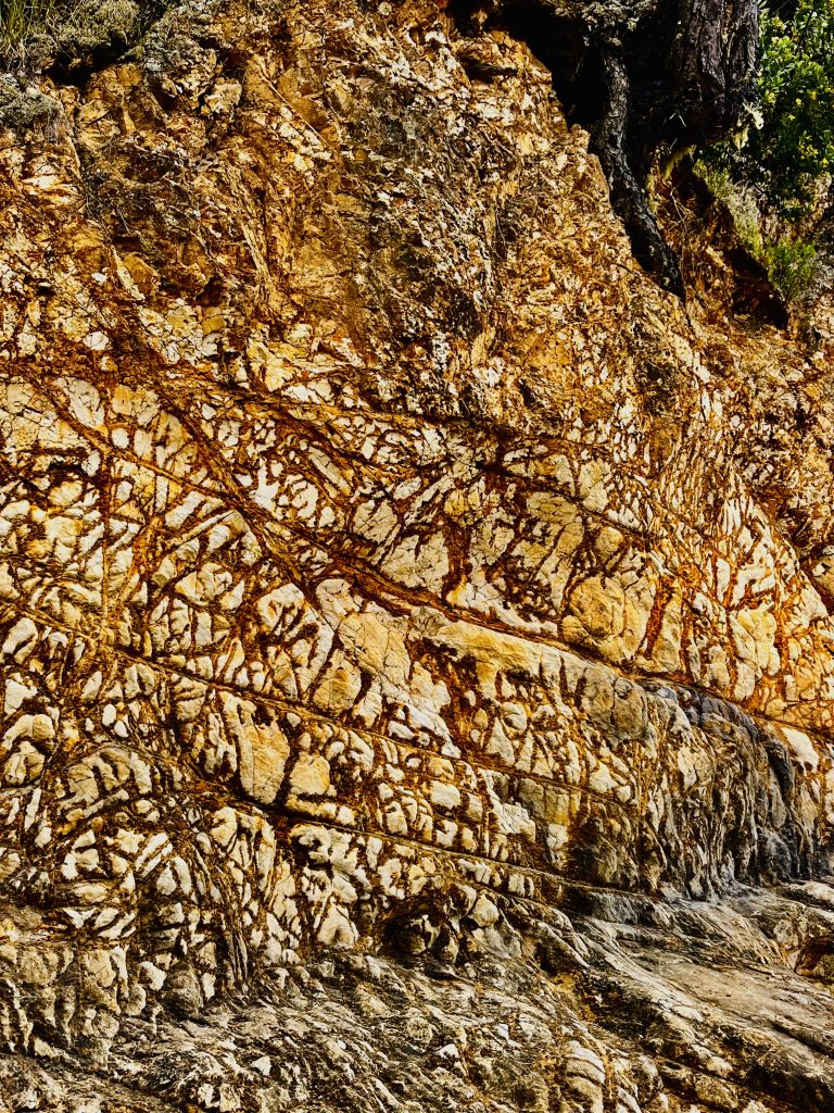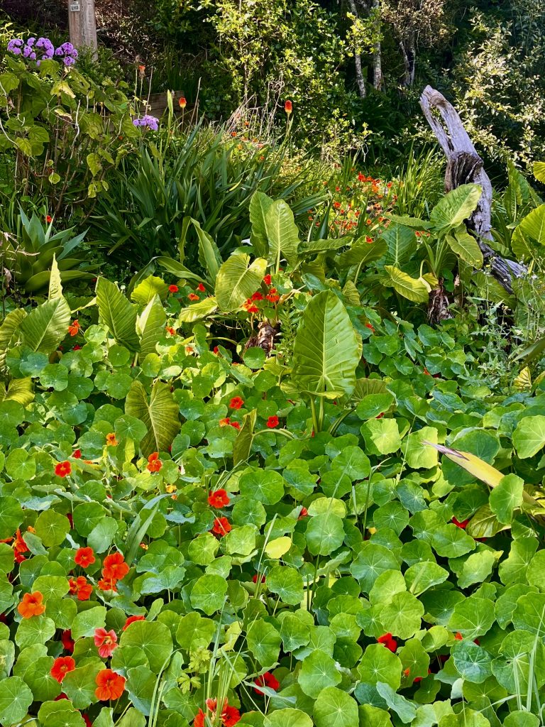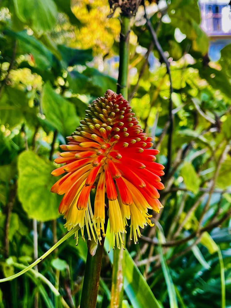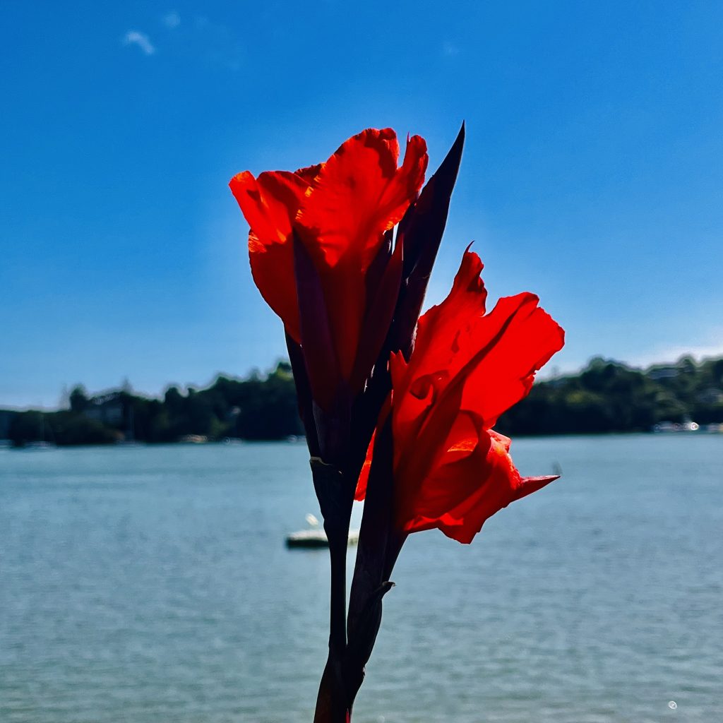 Das Ende des Holzstegs beschließen diese feurig, roten Blüten. Fast wie eine rote Ampel, weisen sie uns auf einen erneut völlig anderen Wegabschnitt hin. Es wird lavagesteinig…