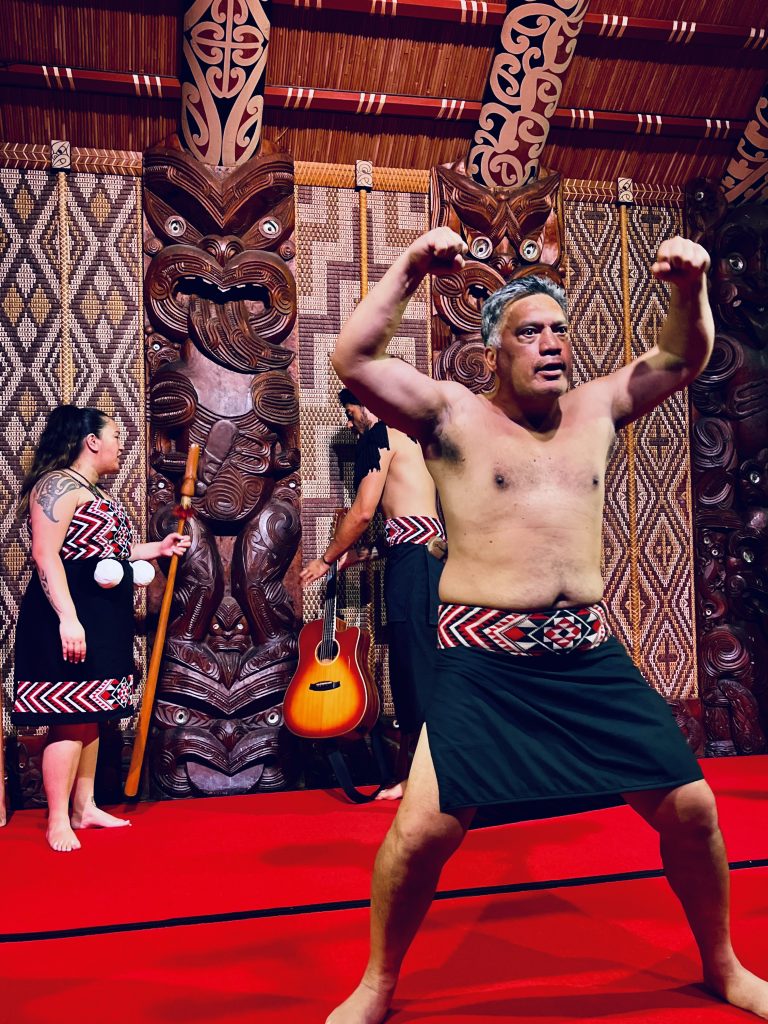 Apropos Tanz, wir werden Zuschauer einer typischen Begrüßungszeremonie und Tanzvorführung gebürtiger Māori.