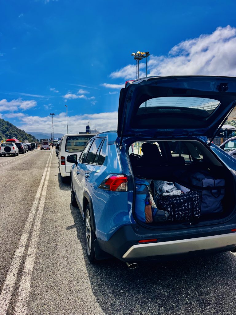 Heute verlassen wir nicht nur „The Waters“, heute verlassen wir auch die spektakuläre Südinsel und setzen mit der Fähre über nach Wellington, auf die gemäßigtere Nordinsel. Doch erst einmal verabschieden wir uns von Lou und Aiden. Es fällt uns allen schwer, und eine lustige Idee wäre, die beiden würden uns adoptieren. Ihre Idee… 😂. Dann könnten wir einfach hierbleiben und ihnen bei den vielen Aufgaben helfen. Spaaaß,… mit einem Körnchen Wahrheit. Na dann mal los jetzt…