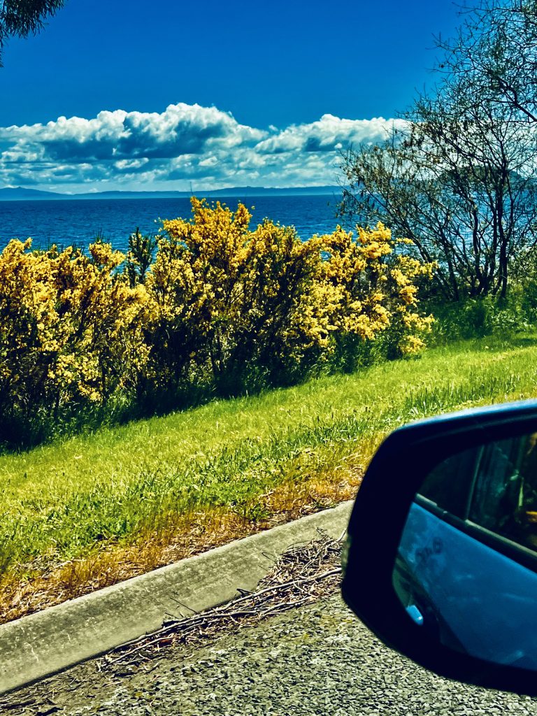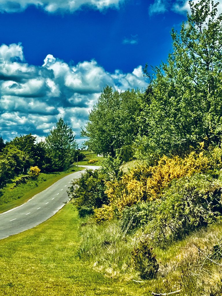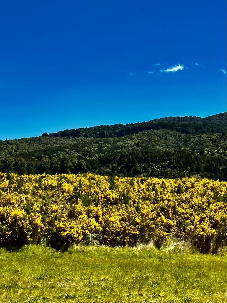 Mit Sonnenschein sieht natürlich alles besonders gut aus. Und jetzt passieren wir endlose Ginsterfelder, kilometerlang.