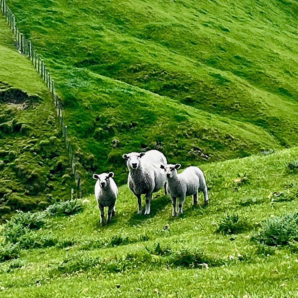 Dahinter geht’s weiter, doch sehr viele Schafe haben hier ihr zu Hause. Sie werden zunehmend nervös und der Weg ist immer weniger ein Weg. Zumindest fürs Auto.
