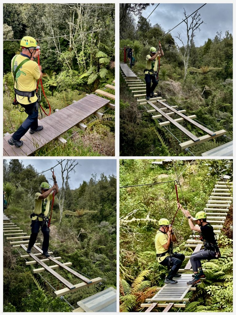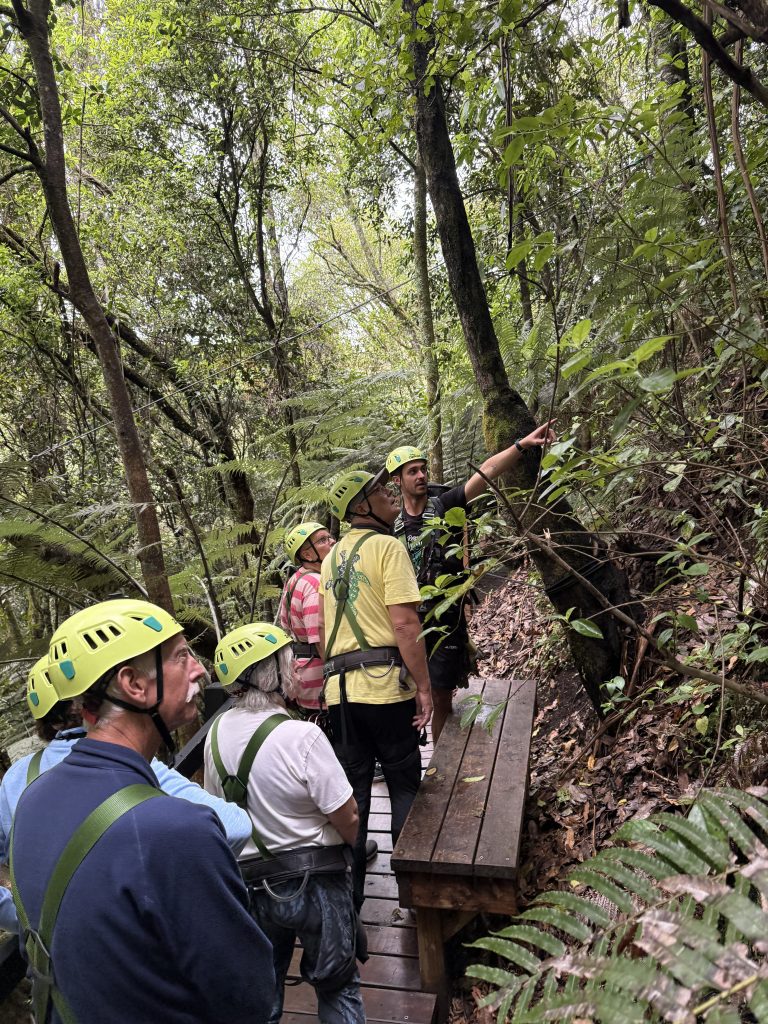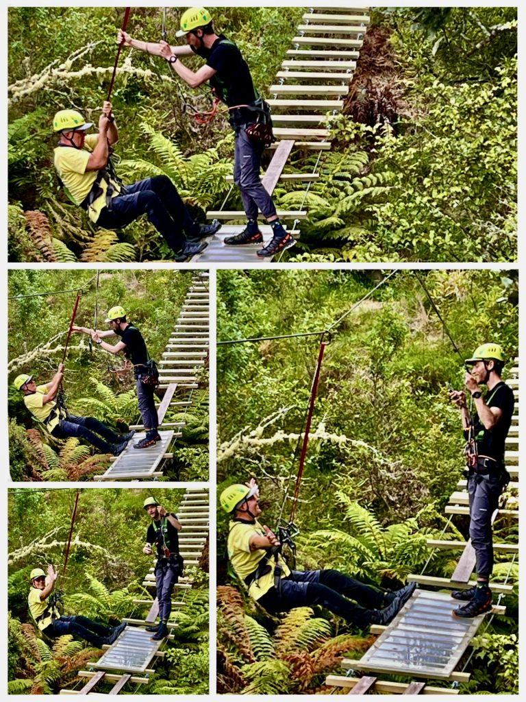 und ab geht’s ins Gelände, zu den verschiedenen Ziplines. Wir, 7 alte Knacker und Knackerinnen folgen brav und aufmerksam unseren beiden Jungs.
