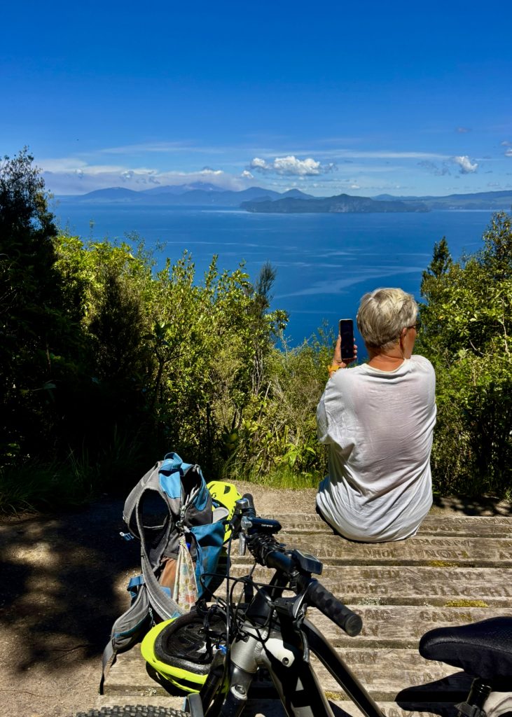 Wir gewöhnen uns mehr und mehr an die Räder und die Strecke. Manchmal sause ich Klaus einfach davon, manchmal habe ich das Gefühl, ich fliege beim Bremsen grad über den Lenker. Das passiert immer dann, wenn ich nur die Vorderradbremse ziehe…. 😎. Aber einen Abgang mache ich dann doch nicht. Auch nicht, wenn eine Pedale plötzlich an einem Stein oder in der Erde hängen bleibt. 😅 Klaus hat nach halber Strecke Handgelenkschmerzen, nen tauben Daumen, zwickende Knie und einen schmerzenden linken Fuß. Mensch, und seit ein paar Tagen muckt auch wieder sein rechtes Ohr. Wir haben jetzt alle antibiotischen Tropfen verbraucht, und es wird und wird einfach nicht richtig gut, im Gegenteil. Jetzt überlegen wir schon, wo wir ein Krankenhaus aufsuchen könnten. Erst in Auckland? Mal abwarten, wie es mit Kläusi’s rechtem Ohr weitergeht?! Im Moment hat er schon wieder eine Waschmaschine im Gehörgang. 😕