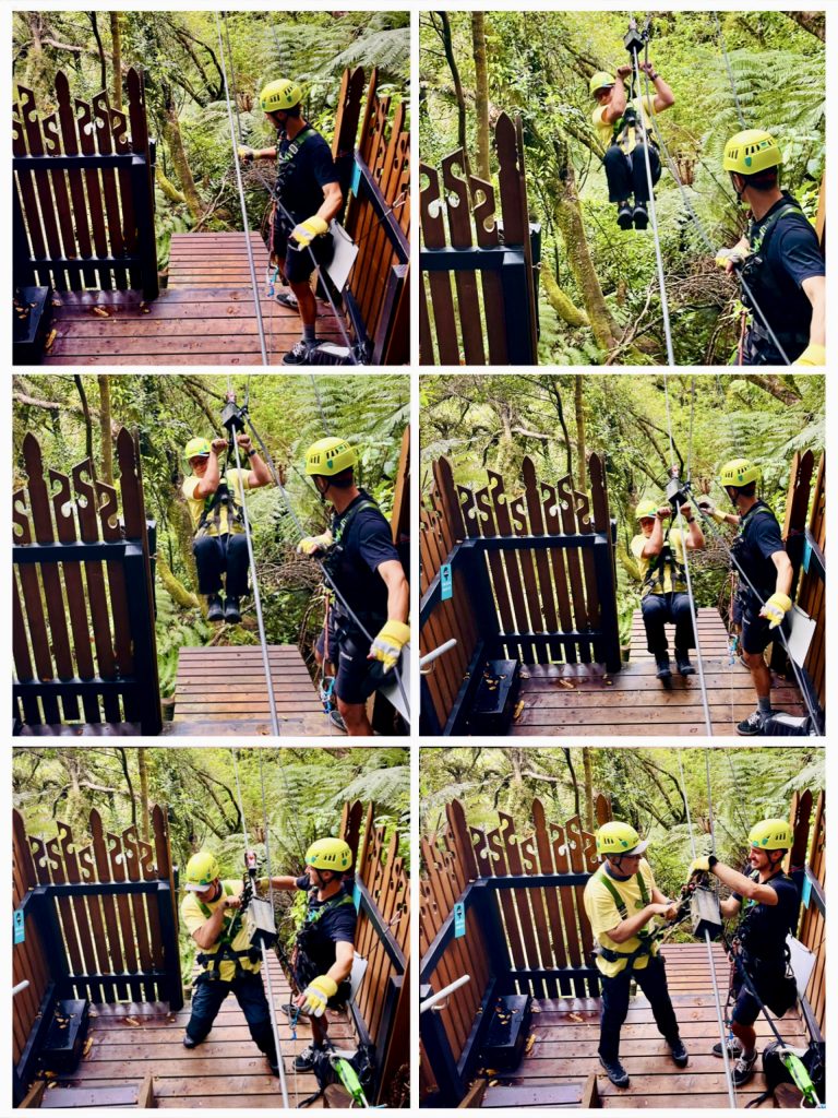 Zwei super nette Guides empfangen uns. Ein Kalifornier und ein Franzose. Work and Travel lässt grüßen. Beide Jungs sind top organisiert, sehr einfühlsam, lustig und kompetent. Beide sprechen ein völlig sauberes Englisch und sind gut zu verstehen. Wir bekommen unser Zipline-Geschirr angezogen