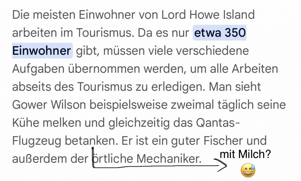 Nur 350 Bewohner hat dieses Island. Folgendes habe ich gefunden: