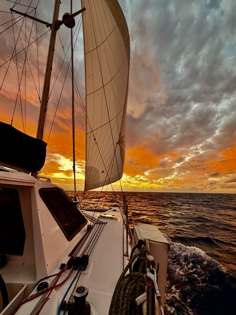 Wir haben es durchgestanden! 😮‍💨 Mann bin ich froh!!! 🤗 Halleluja! 130 Seemeilen sind wir in den letzten 24 Stunden gesegelt und davon bestimmt die Hälfte wieder in die richtige Richtung. 👍