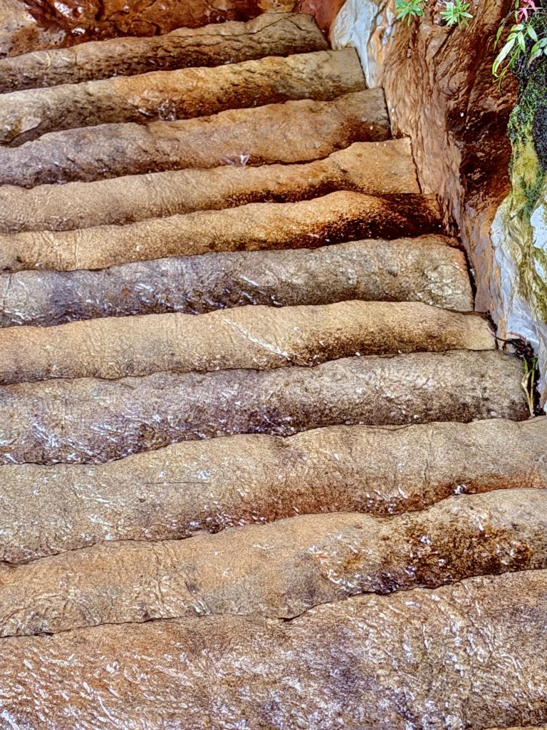 Ach sooo, auf Kapitän Murray geht dieser spektakuläre Wanderweg zurück. Wobei Weg ist gut gesagt, es ist eher eine Kletterei. Mit 4 Leuten, der sogenannten “Irischen Brigade”, hat er sich 2 Jahre lang abgemüht, um diesen Pass zu erschaffen. Die größte Herausforderung war es, die Stufen in den Fels zu schlagen. Zuvor hing Murray an exponierter Stelle im Bootsmannsstuhl am Felsen, um einen möglichen Weg überhaupt erst planen zu können. Mutig, mutig, Herr Kapitän!!! So, wir sind mittlerweile unten angekommen, mit dem flauen Gefühl im Magen, diese super steilen und hohen Stufen auch wieder zurück zu müssen. Doch der Anblick des Wasserfalls von unten lohnt sich auf jeden Fall! 💯❗️