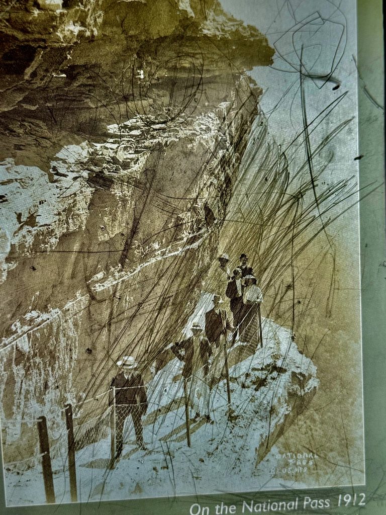 Jetzt marschieren wir einen vor über 100 Jahren in den Fels geschlagenen Weg entlang,…