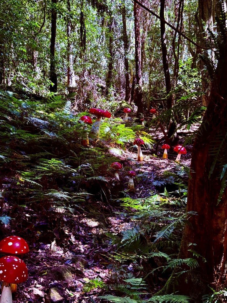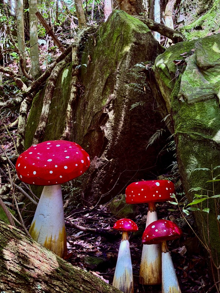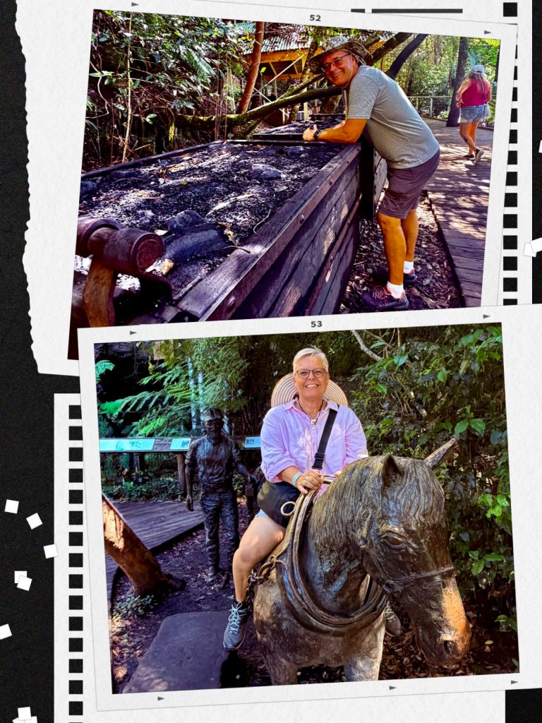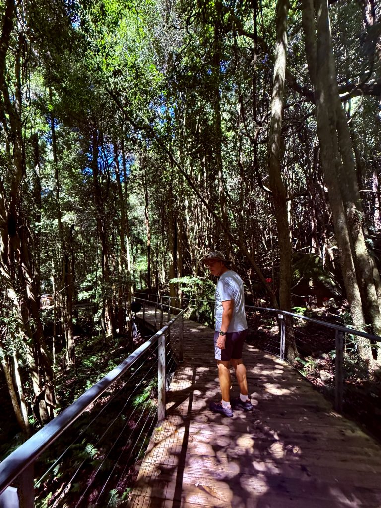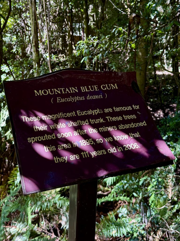 Nachdem hier viele Bäume für die Kohle abgeholzt wurden und der Kohlebergbau beendet war, machte sich der Eukalyptus breit. Wir wandern jetzt durch den am Fuße der Seilbahn liegenden Wald, der schön mit Wegen angelegt ist und noch dazu nett für Kinder gestaltet wurde.