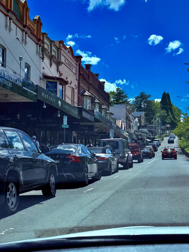 Auf glühenden Kohlen wird selbstständig gebrutzelt, der Dunstabzug hängt praktisch direkt darüber. Eine Erkenntnis ist, das Fleisch, wenn auch an Menge nur wenig, ist der Oberhammer!!!! Super zart und extrem geschmackvoll, obwohl nur etwas gesalzen. Toll!!! Das hat sich voll gelohnt. Jetzt laufen wir noch die Geschäftsstraße von Katoomba runter und wieder rauf, in dieser niedlichen Ortschaft der Blue Mountains.