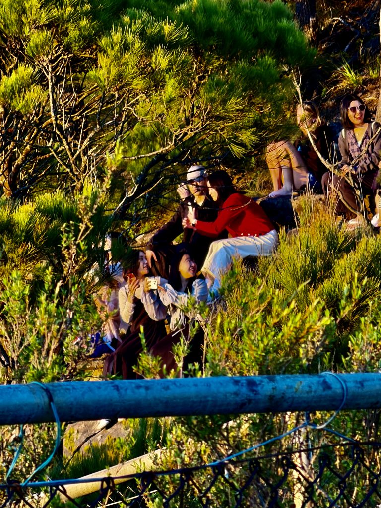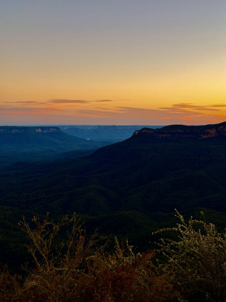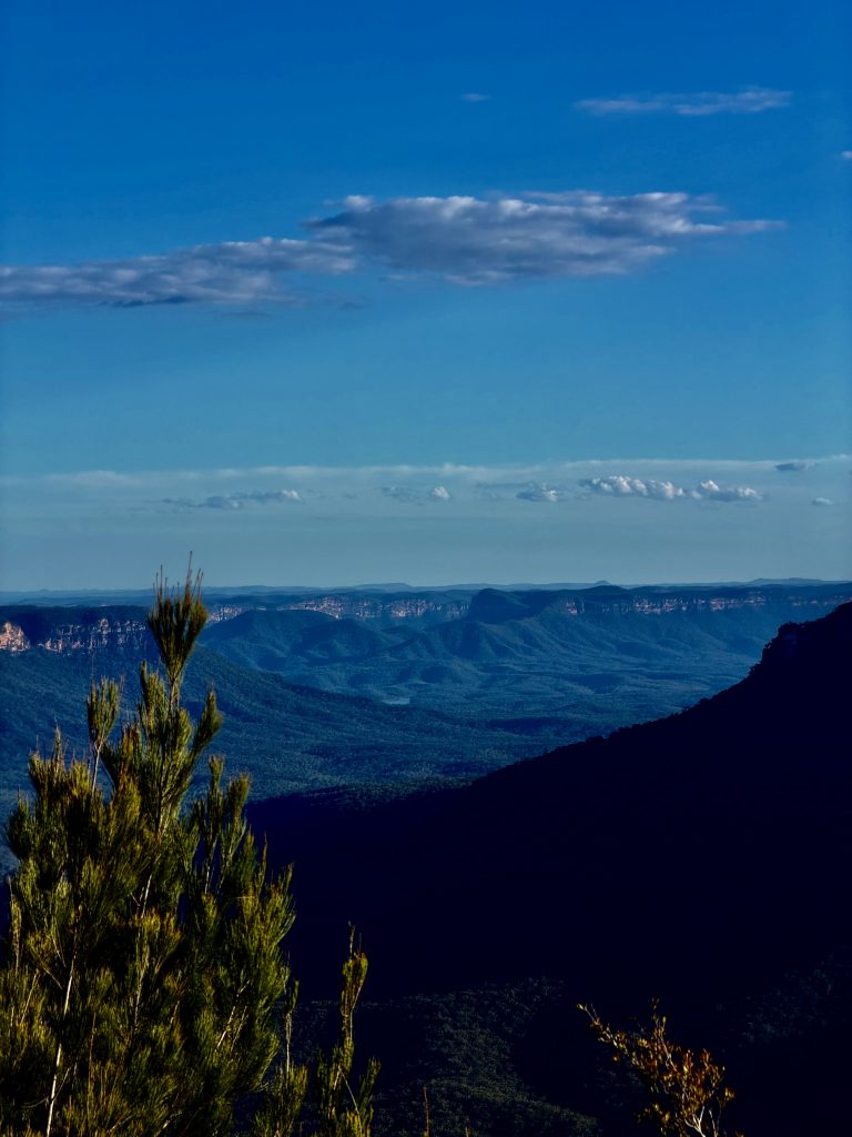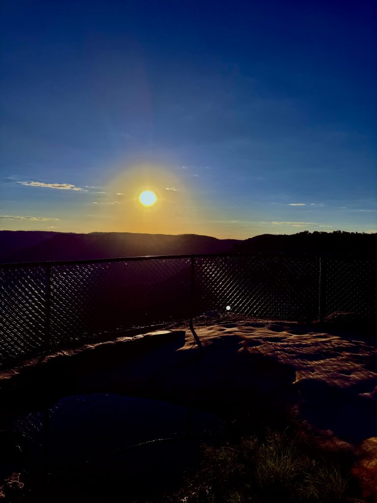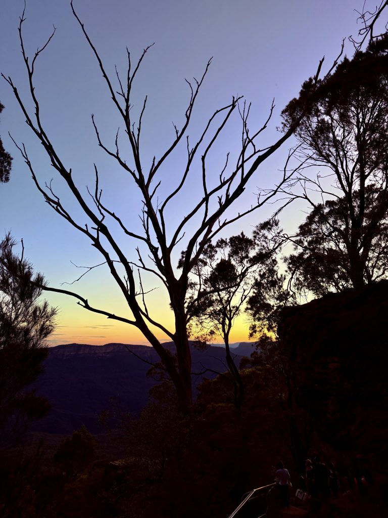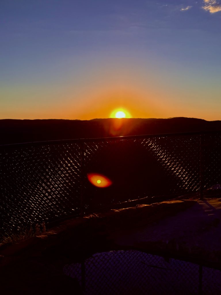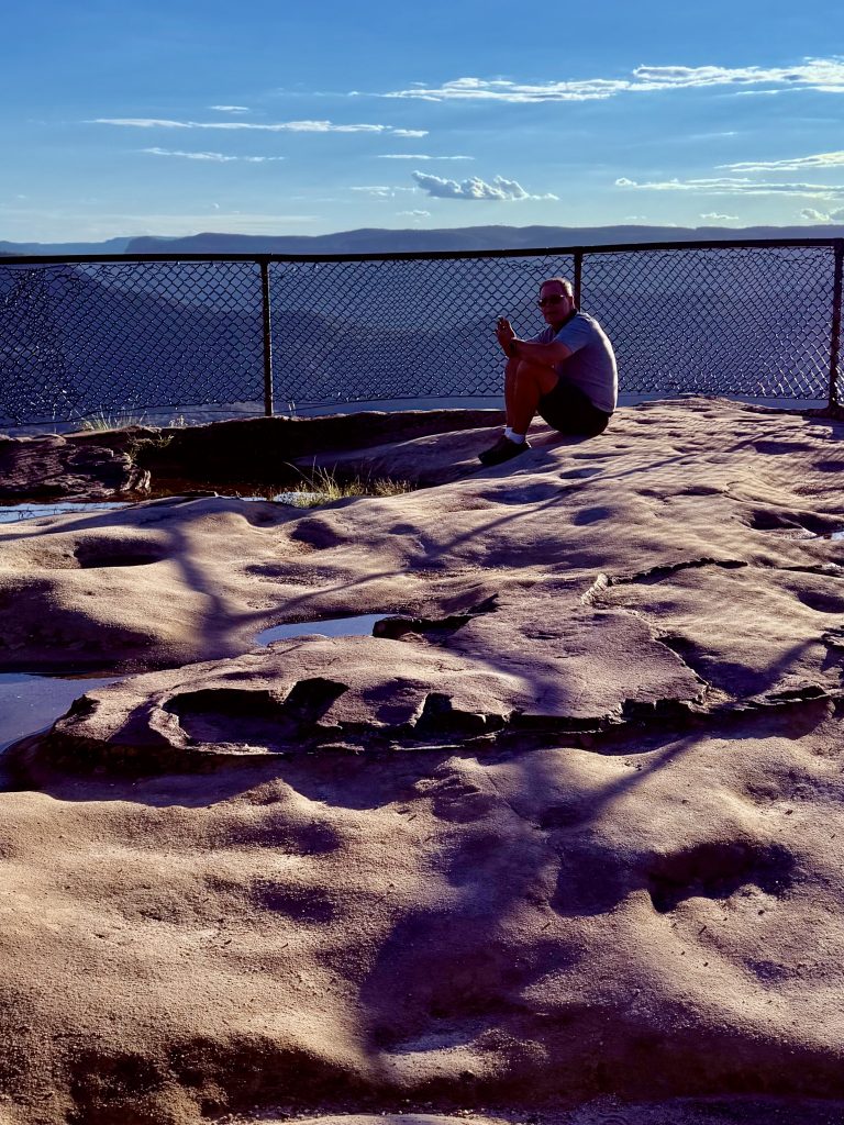 So, das wäre geschafft. Chat GPT sagt aber noch, dass wir zum Sonnenuntergang unbedingt zu einem bestimmten Ausguck gehen sollen. Chat gibt uns genau die Zeit vor, wo wir uns hinstellen sollen, nicht in die Mitte sondern links an den Rand des Plateaus, und dass die Kamera leicht nach unten gerichtet werden sollte, um optimale Bilder zu erhalten. Poah, was ist das denn??? Das ist ja der Hammer!!! Detaillierte Infos zu entlegensten Stellen auf dieser Erde und das auch noch in Sekundenschnelle… Ich bin sprachlos ! Wir werden es genauso machen, aber erstmal geht’s in den Ort etwas schnabulieren. Ach nee, zu allererst fahren wir noch um die Ecke, zu einem Ausguck auf die “Drei Schwestern”. Wobei Klaus lapidar feststellt, ihm würden seine zwei Schwestern eigentlich ausreichen. 🤭