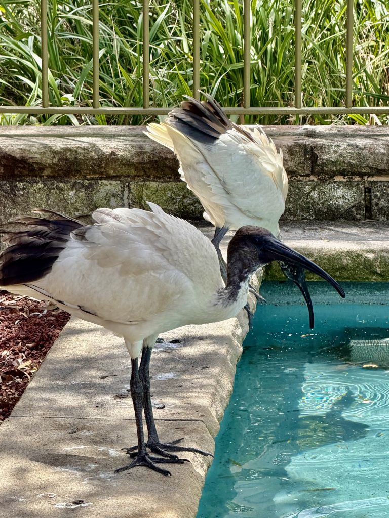 Wieder draußen, begegnen uns überall dort, wo es grün ist oder Wasser sprudelt diese ulkig Gefiederten. Sind die nun hübsch oder hässlich???