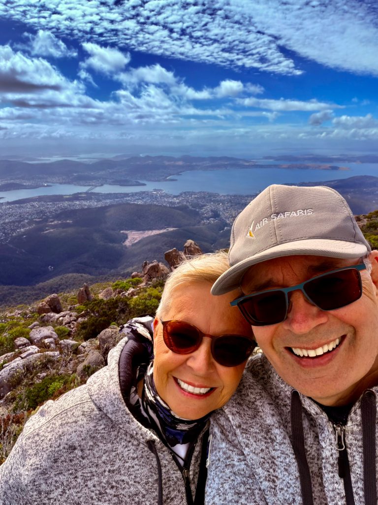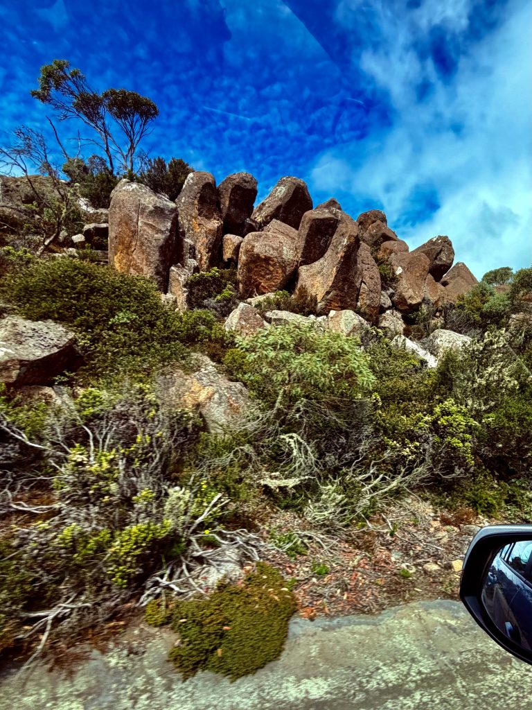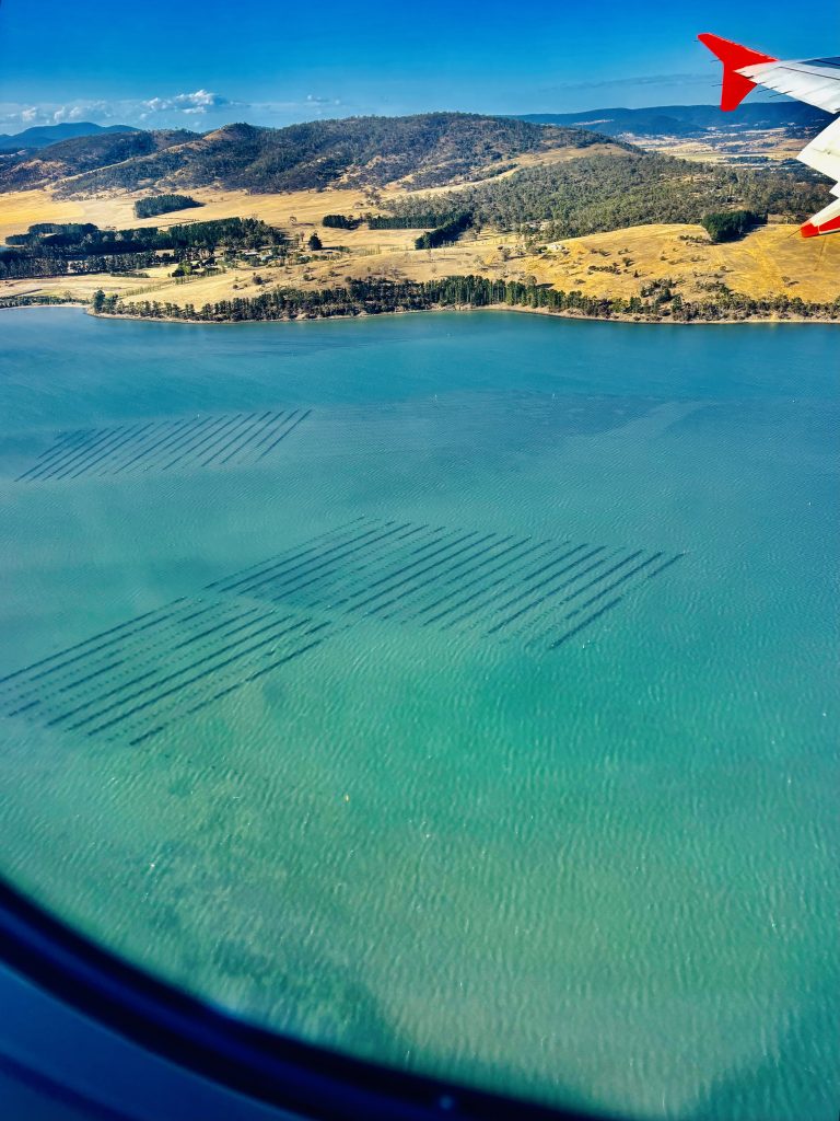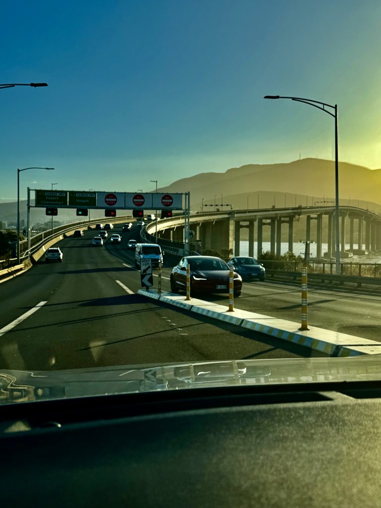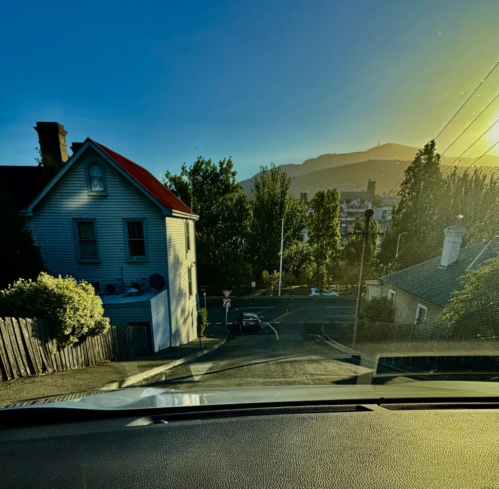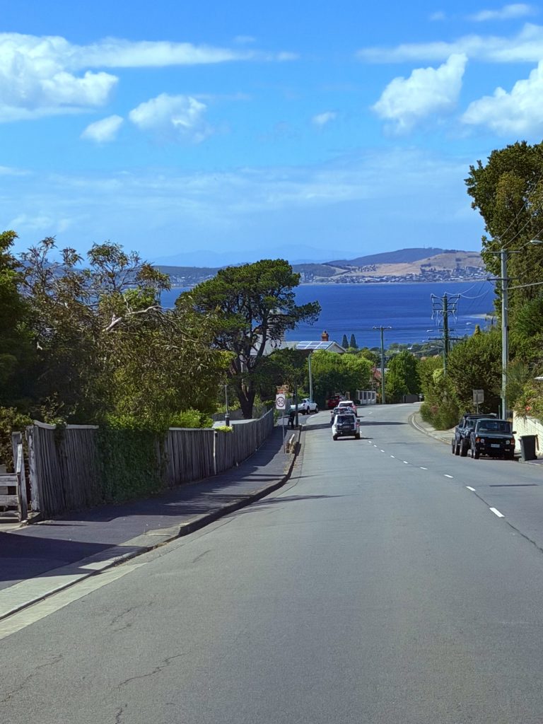 Wieso denken so viele, auch ich bis vor Kurzem, bei Tasmanien an Dracula? 🧛♂️ Weil wir die große, südlichste Insel Australiens mit Transylvanien, einer Region in Rumänien, verwechseln. Das ist es! Also gibt es auf Tasmanien, oder liebevoll von den Australiern „Tassie“ genannt, keinen Dracula? Richtig! Aber, es gibt den Tasmanischen Teufel! Im Zoo von Sydney haben wir den ja schon in Aktion kennengelernt. Wieder zurück in Newcastle nahmen wir uns den Wetterbericht vor und entschieden drei Tage später nach Hobart, der Hauptstadt Tasmaniens, zu fliegen. Klaus hatte ne tolle, flotte Flugverbindung von Newcastle nach Hobart gefunden und sogleich gebucht. Die gibt’s nämlich nur dienstags hin und donnerstags zurück! Ein Leihwagen steht dort auch schon für uns bereit, und die ersten 3 Unterkünfte sind ebenfalls unter Dach und Fach. Den Rest werden wir sukzessive dazubuchen. Allerhopp, und so sind wir Rubbel die Katz in Hobart gelandet.