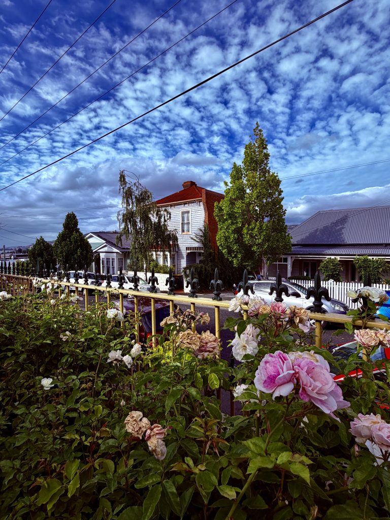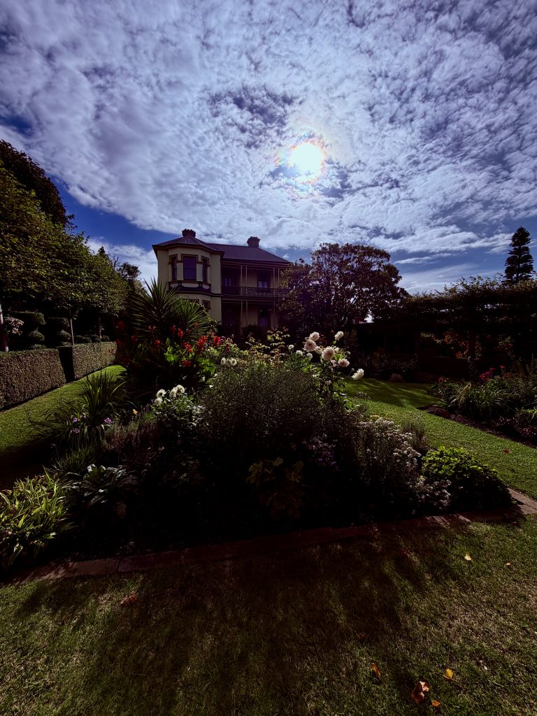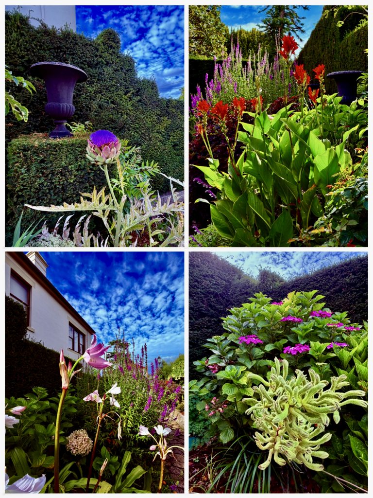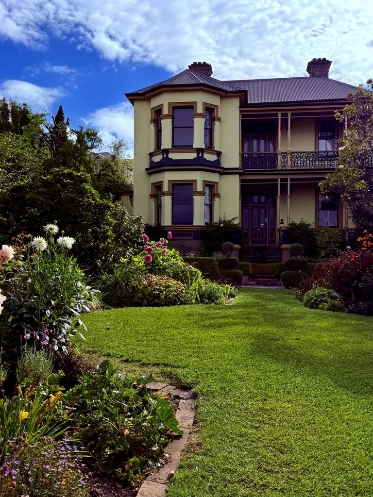 Und das Frühstück ist ein wahrer Gaumenschmaus. 😋 Leckere Eierspeisen, gutes Sauerteigbrot und fantastischer, naturtrüber, inseleigener Apfelmost. Dazu guter, englischer Tee, was will man mehr?! Hiernach geht’s wieder zurück zu unserer Wohnung, wir wollen uns so einiges in Hobart und Umgebung anschauen, müssen aber zuvor noch unbedingt den traumhaften, kleinen Park des Hotels bewundern.
