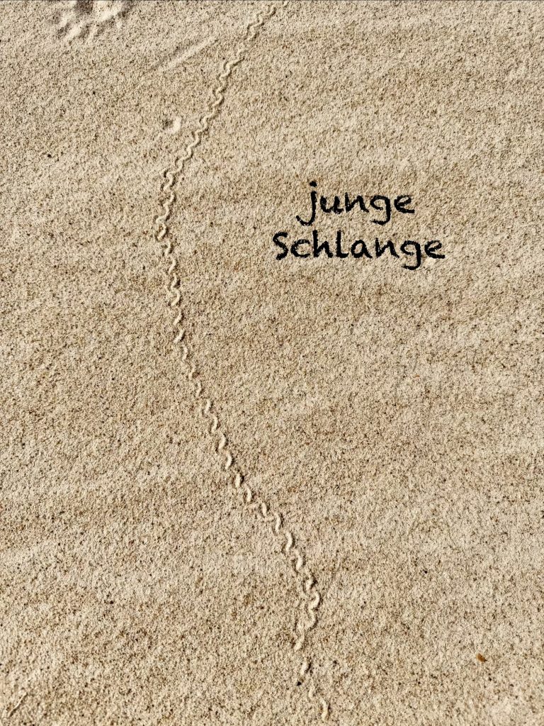 Die Sonne brennt, wir laufen etwas hin und etwas her, finden Spuren im Sand …