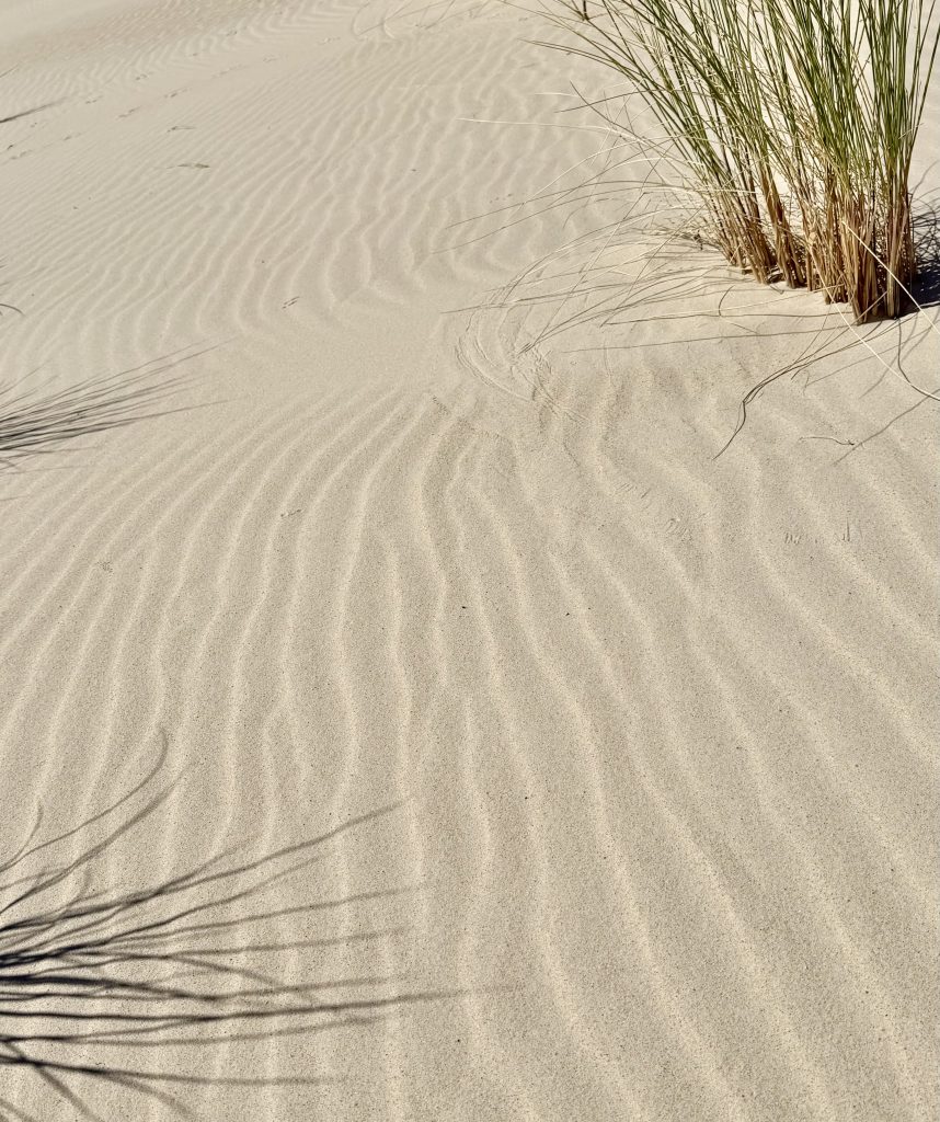 Auch die Gräser hinterlassen ihre Spuren im welligen Sand.