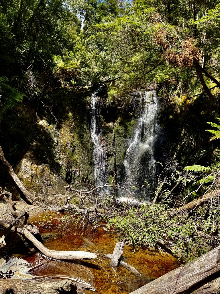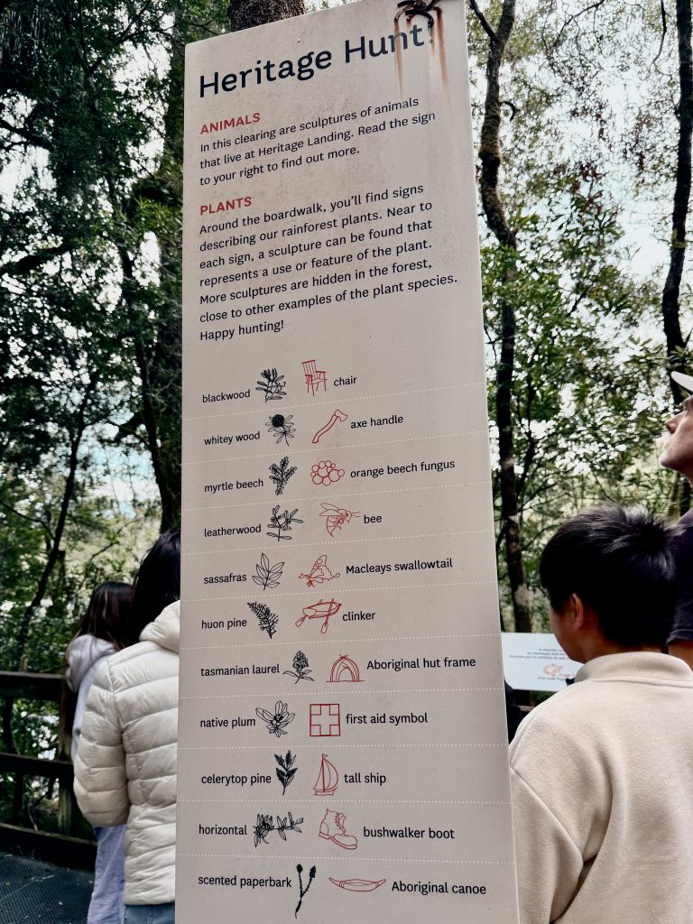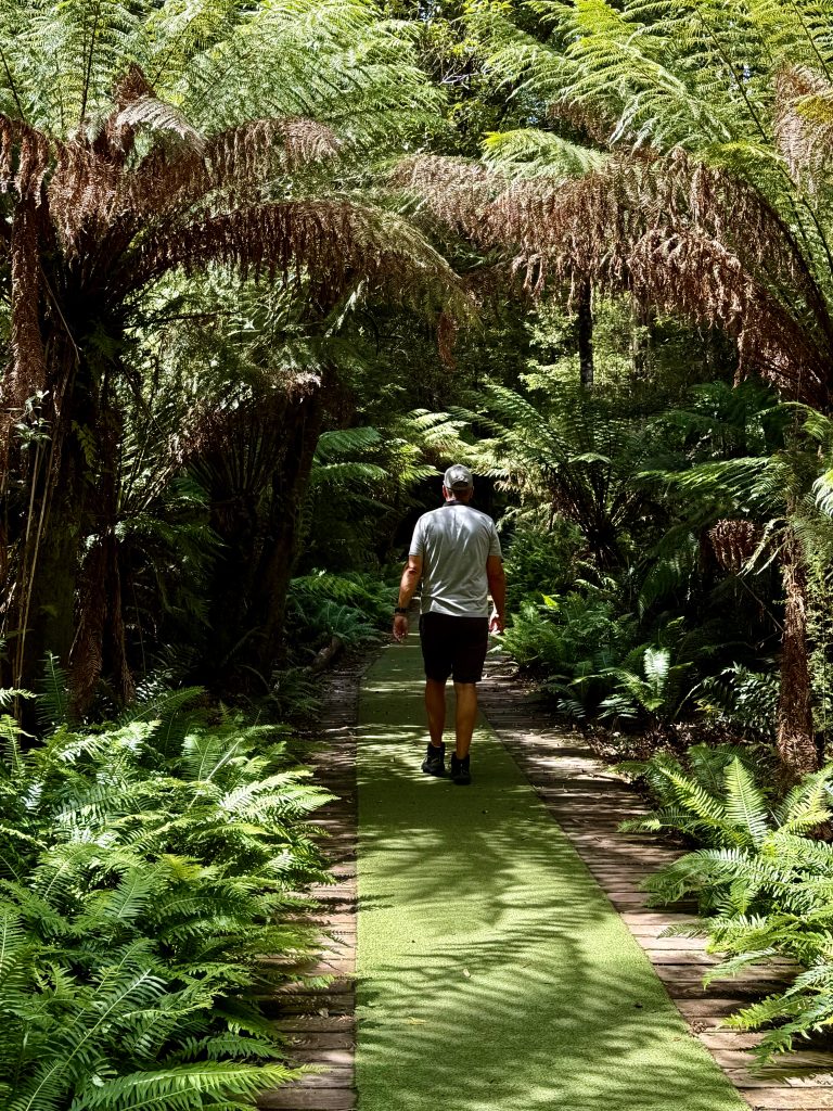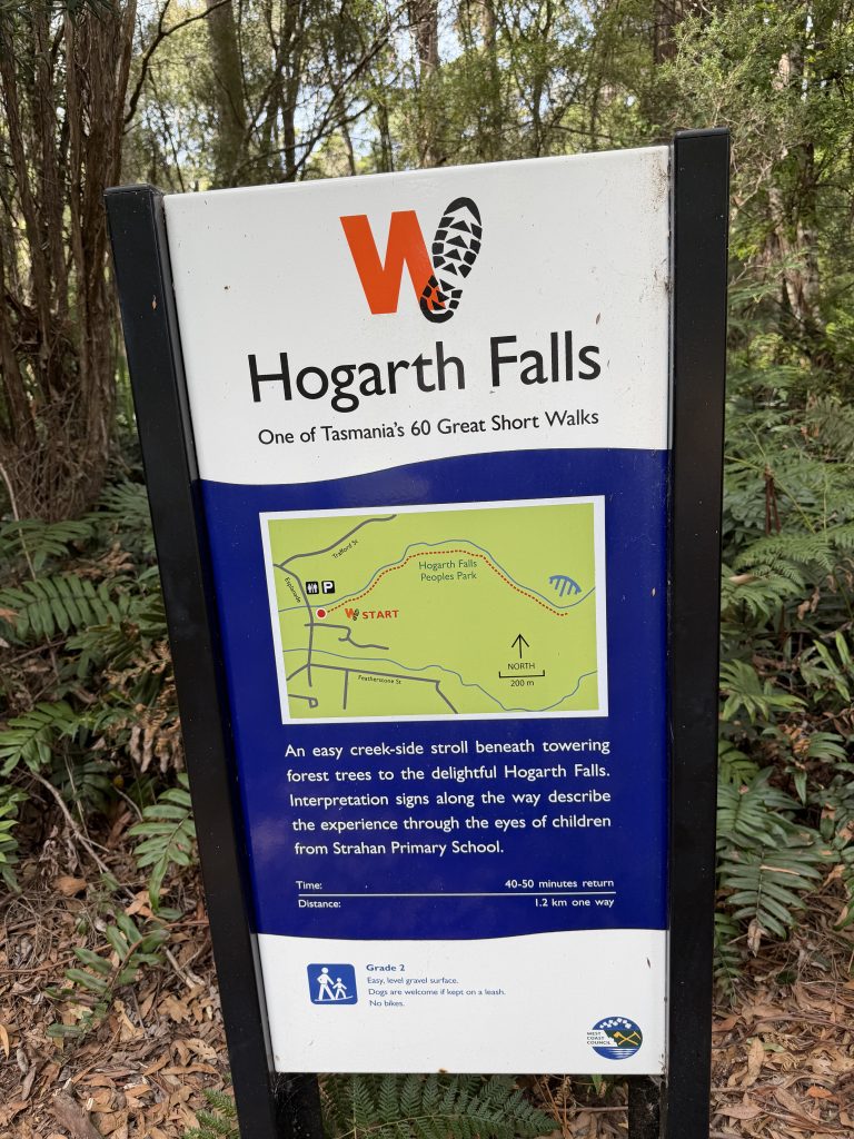 Weit bis zu unserem Heim ist es nun nicht mehr, doch 2 Abbiegen zuvor bietet sich uns noch der Public Garden an, der Garten für die Bevölkerung. Dazu habe ich jetzt nicht mehr sooo dolle Lust, mache aber mit. Immerhin geht’s zu den Hogarth Falls, und Erkundungsmöglichkeiten für Grundschulkinder des Ortes stehen auch noch am Wegesrand bereit. Allerhopp! Auch, wenn wir keine Grundschulkinder mehr sind! 🤣
