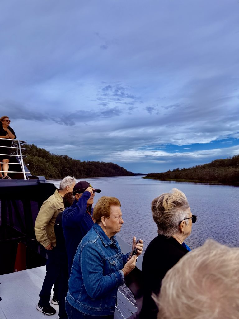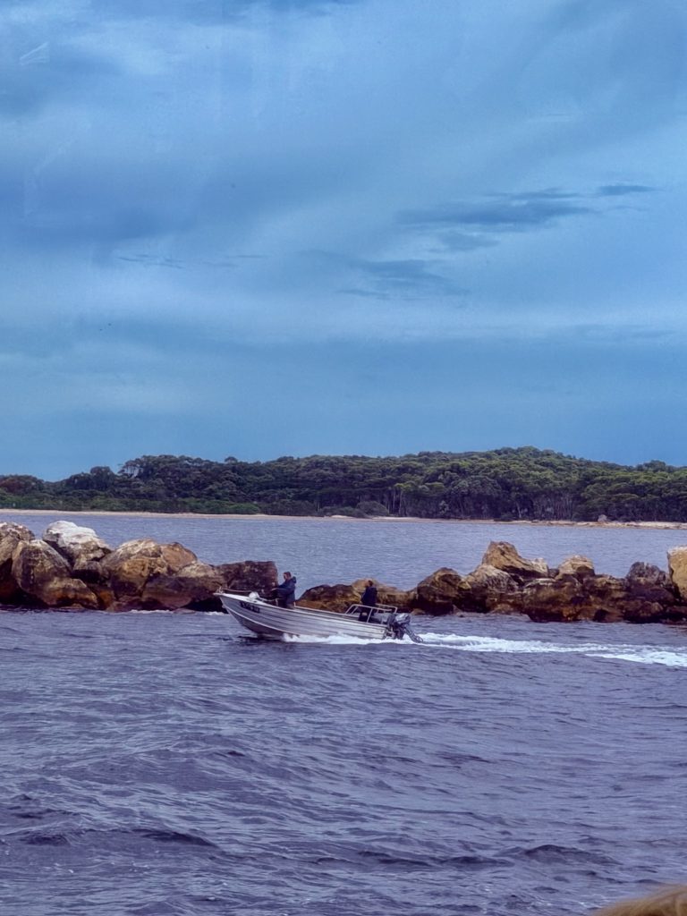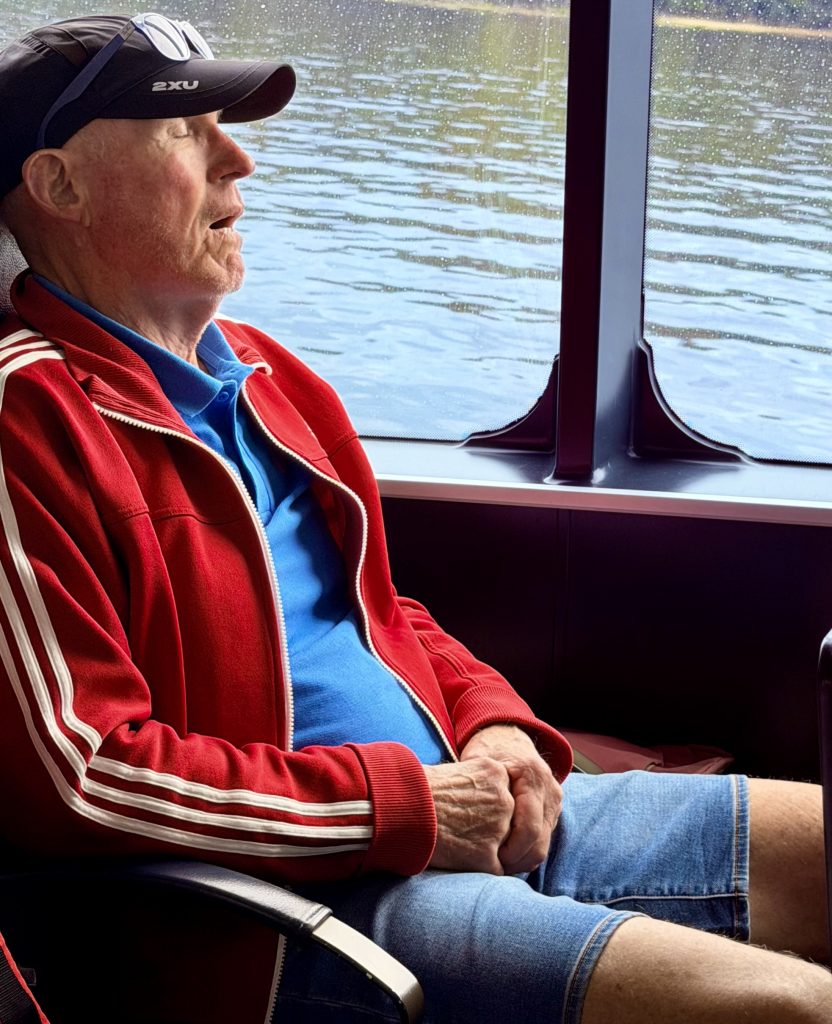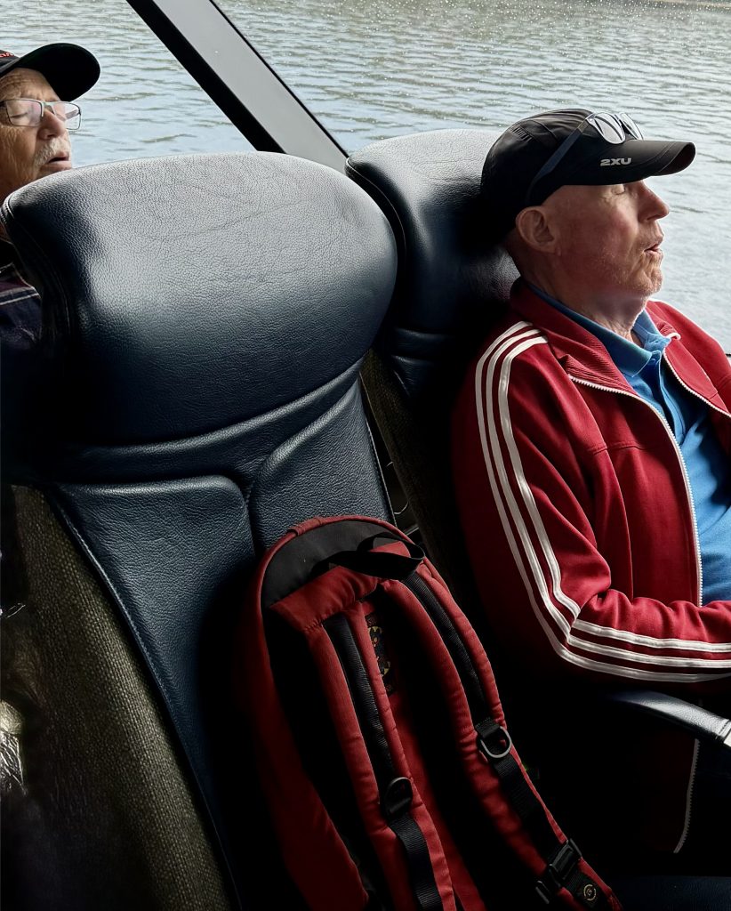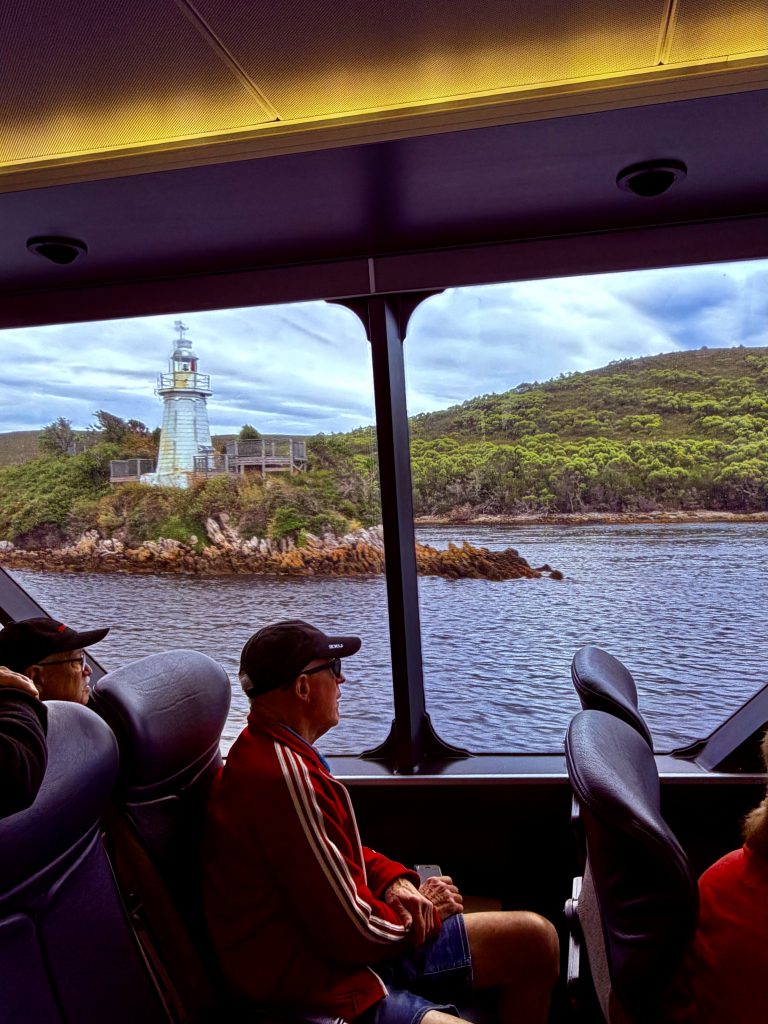 Nur wenige Minuten, nachdem die Motoren ihr gleichmäßiges Brummen ertönen lassen, um uns nach Strahan zurückzufahren, wird das fortgeschrittene Alter der meisten nochmal unverkennbar deutlich. Es wird ganz ruhig. Ein leichtes Schnarchen und Pusten säuselt durch den Raum, Unterkiefer fallen runter… 😴