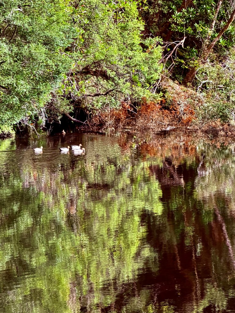 Mit Tempo geht’s zurück und rein in den Gordon River. Da dann aber mit gedrosselter Geschwindigkeit und nur noch mit Elektroantrieb!