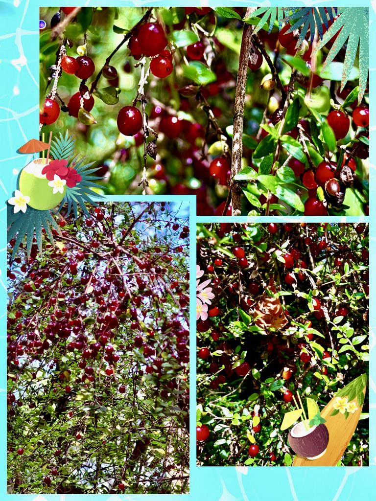 Schau dir doch diese glänzend roten Pfefferbeeren an, die man direkt vom Strauch vernaschen kann. Getrocknet werden sie zu den rosa Pfefferkörnern, die man eine Zeit lang in fast alle Speisen hineingab. Frisch schmecken sie mir aber um Längen besser!