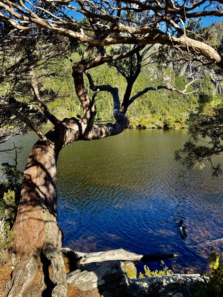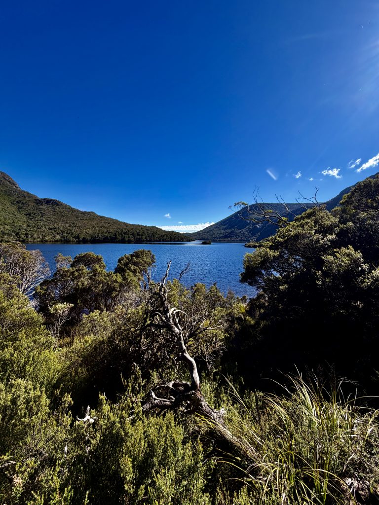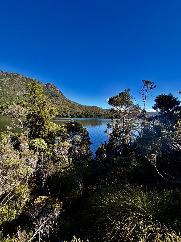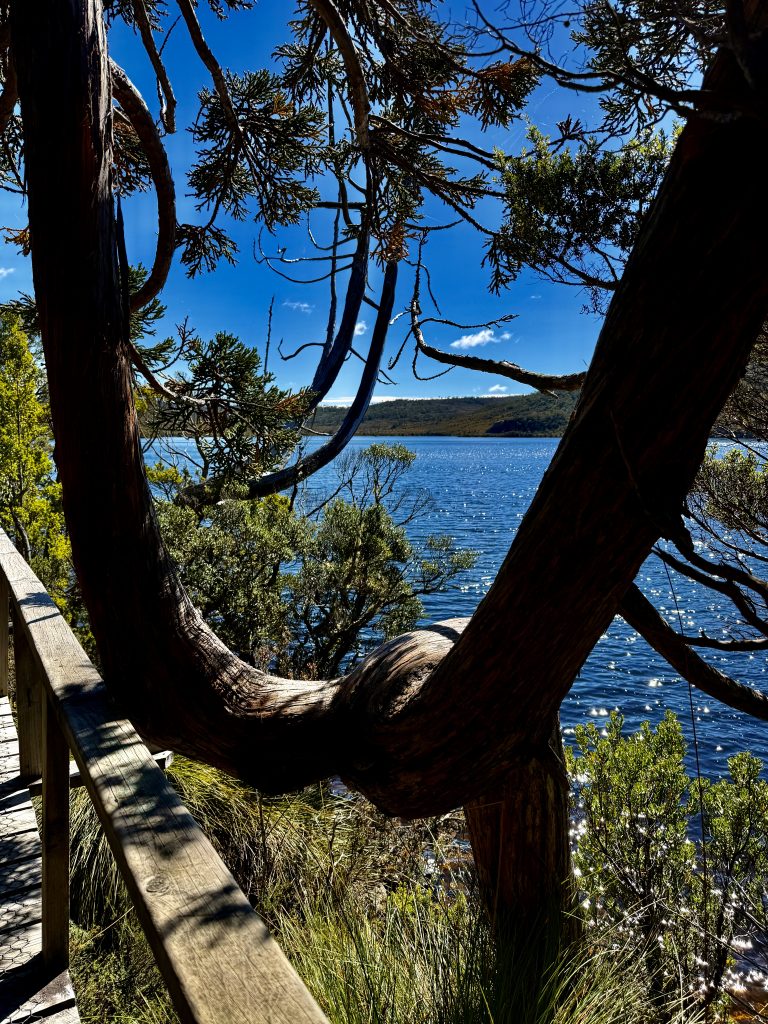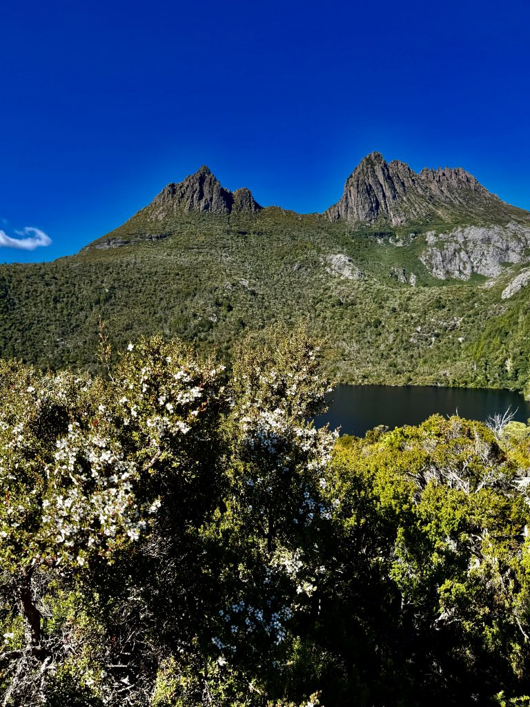 Es gibt sooo viele, schöne Perspektiven auf den Wiegenberg. Ich kann nicht aufhören ihn zu fotografieren. Jepp, die Briten nannten ihn Wiegenberg, da er sie an eine Babywiege erinnerte. Tja, wenn sie meinen… 😏. Und den See nannten sie nicht nach dem Deo, sondern nach dem Spitznamen “Taube” des Gustavus Charles von der Heyde. Er war ein bedeutender und wohlhabender Siedler des 19. Jahrhunderts, und es war damals üblich, Landschaften nach bekannten Persönlichkeiten zu benennen, um diese zu ehren. Also heißt der See “Taubensee”, Dove Lake. Fertig. Echt unromantisch! 🙁