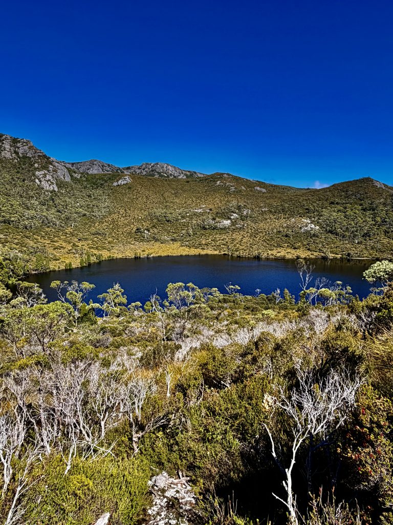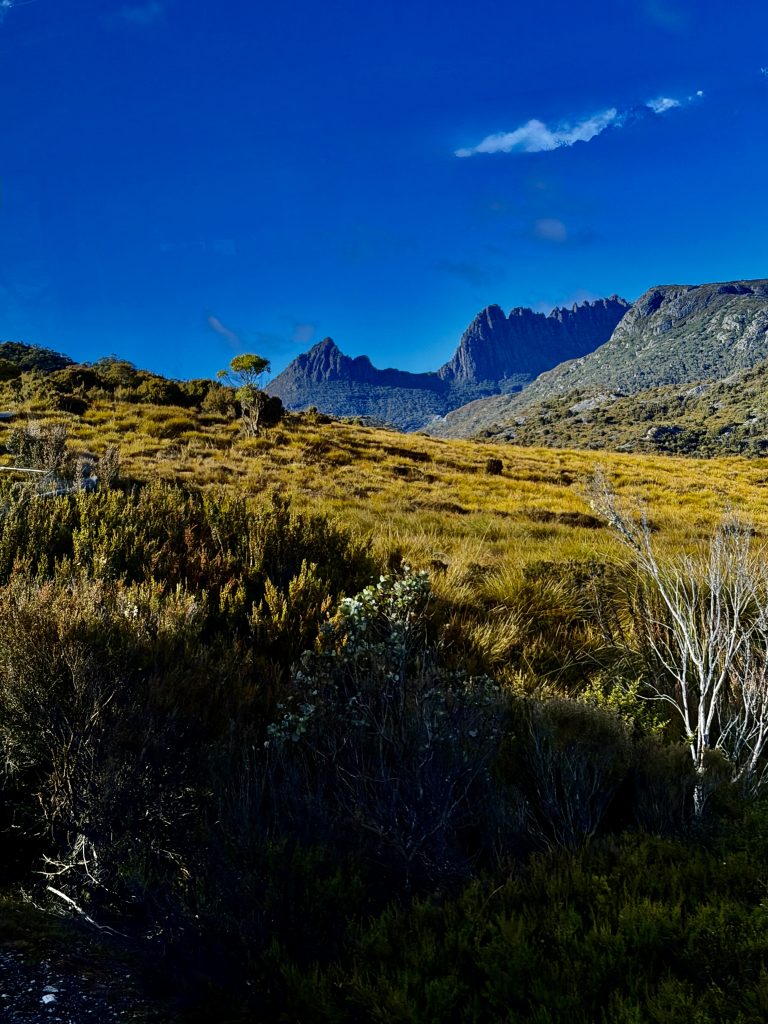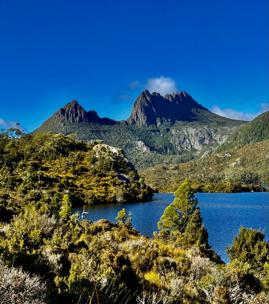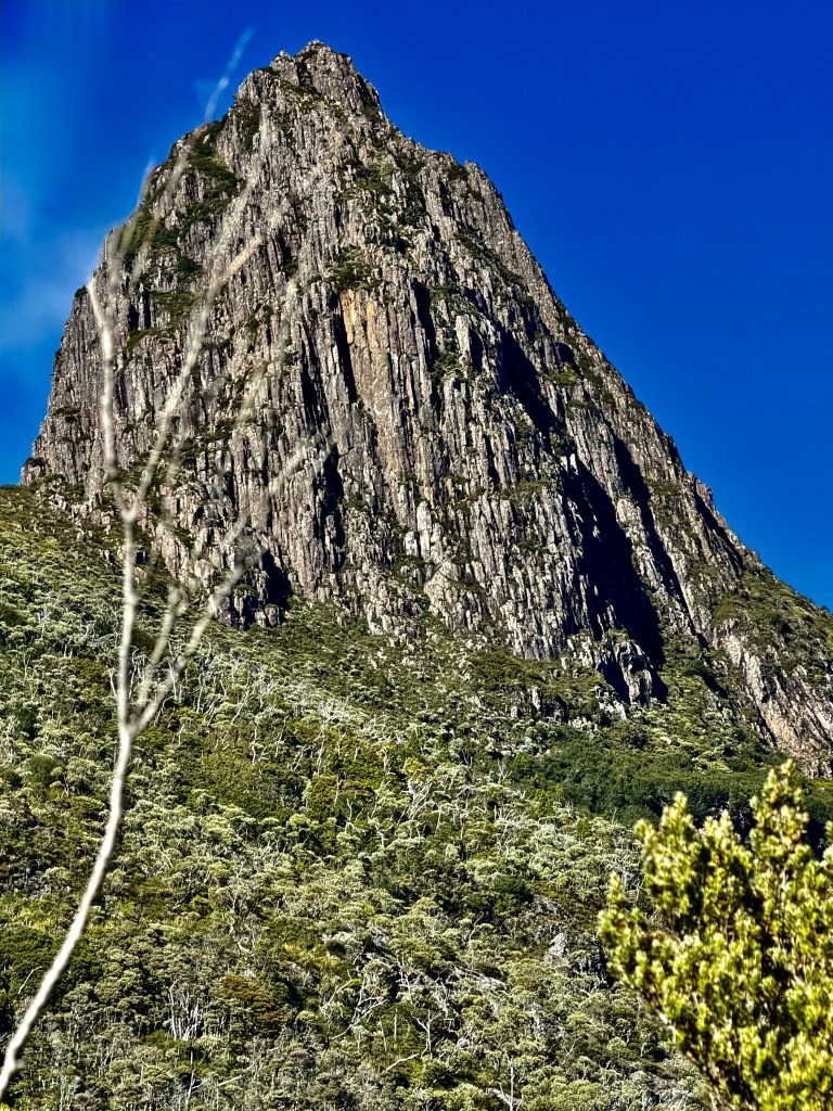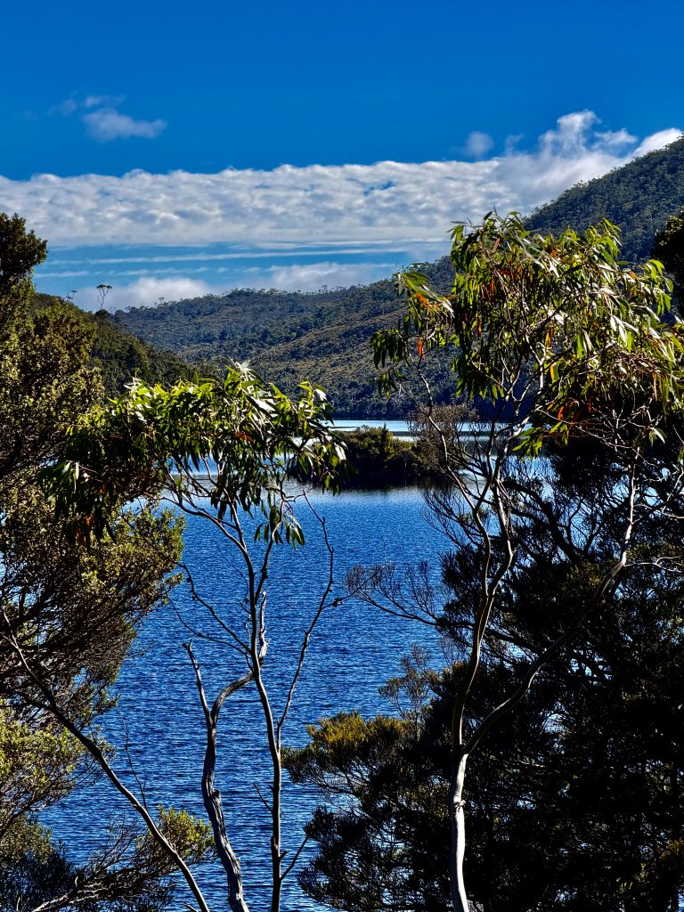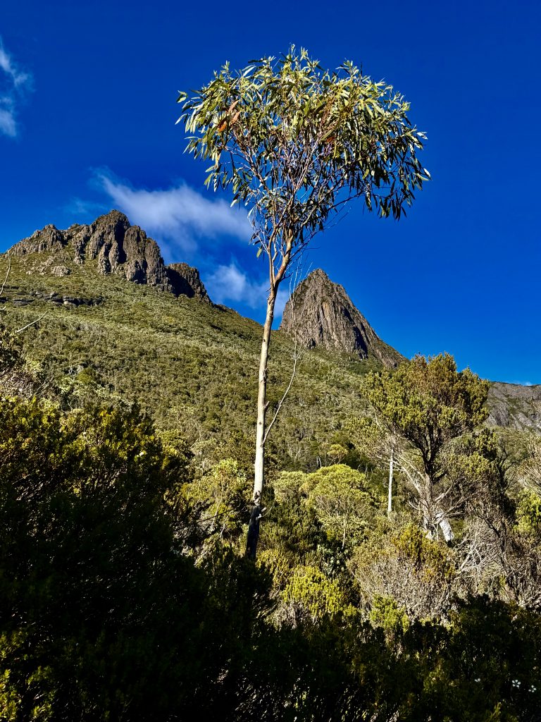 Es gibt sooo viele, schöne Perspektiven auf den Wiegenberg. Ich kann nicht aufhören ihn zu fotografieren. Jepp, die Briten nannten ihn Wiegenberg, da er sie an eine Babywiege erinnerte. Tja, wenn sie meinen… 😏. Und den See nannten sie nicht nach dem Deo, sondern nach dem Spitznamen “Taube” des Gustavus Charles von der Heyde. Er war ein bedeutender und wohlhabender Siedler des 19. Jahrhunderts, und es war damals üblich, Landschaften nach bekannten Persönlichkeiten zu benennen, um diese zu ehren. Also heißt der See “Taubensee”, Dove Lake. Fertig. Echt unromantisch! 🙁