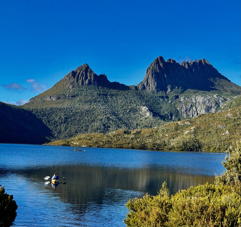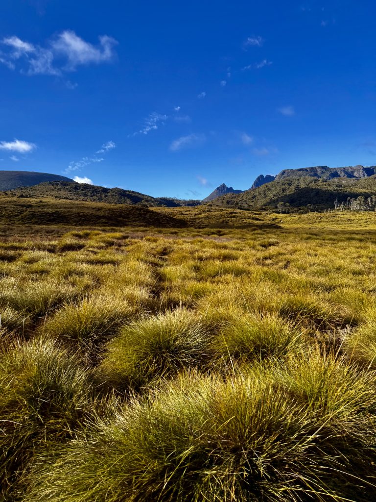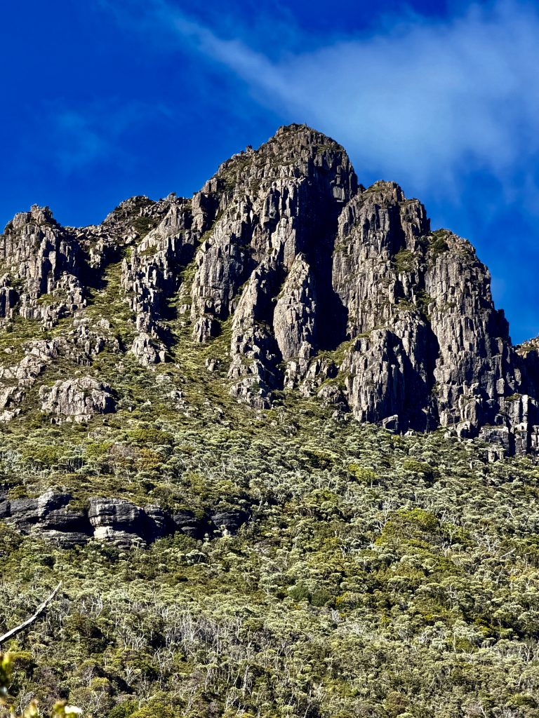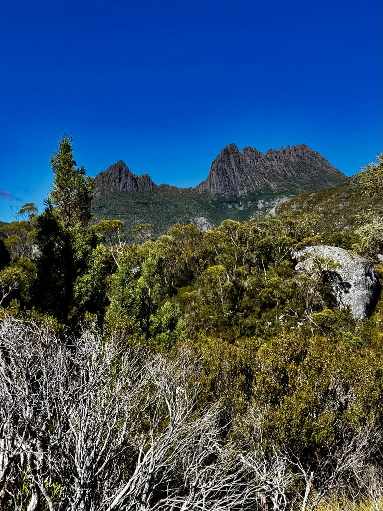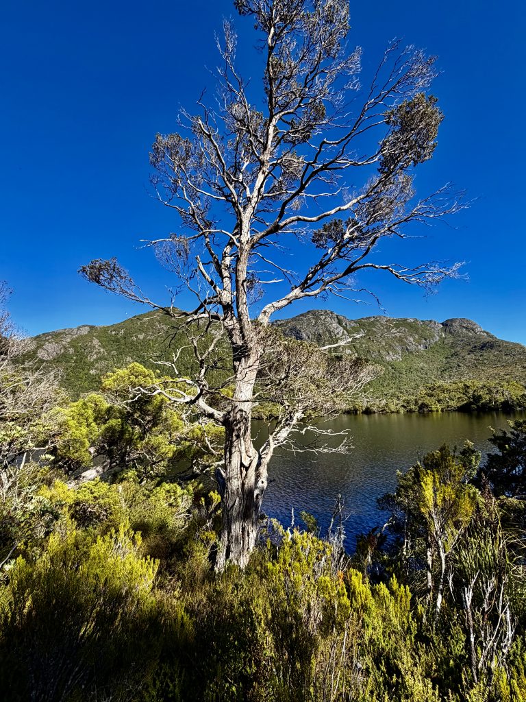 Es gibt sooo viele, schöne Perspektiven auf den Wiegenberg. Ich kann nicht aufhören ihn zu fotografieren. Jepp, die Briten nannten ihn Wiegenberg, da er sie an eine Babywiege erinnerte. Tja, wenn sie meinen… 😏. Und den See nannten sie nicht nach dem Deo, sondern nach dem Spitznamen “Taube” des Gustavus Charles von der Heyde. Er war ein bedeutender und wohlhabender Siedler des 19. Jahrhunderts, und es war damals üblich, Landschaften nach bekannten Persönlichkeiten zu benennen, um diese zu ehren. Also heißt der See “Taubensee”, Dove Lake. Fertig. Echt unromantisch! 🙁