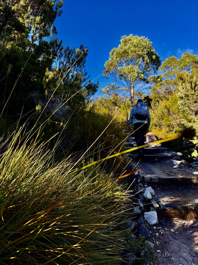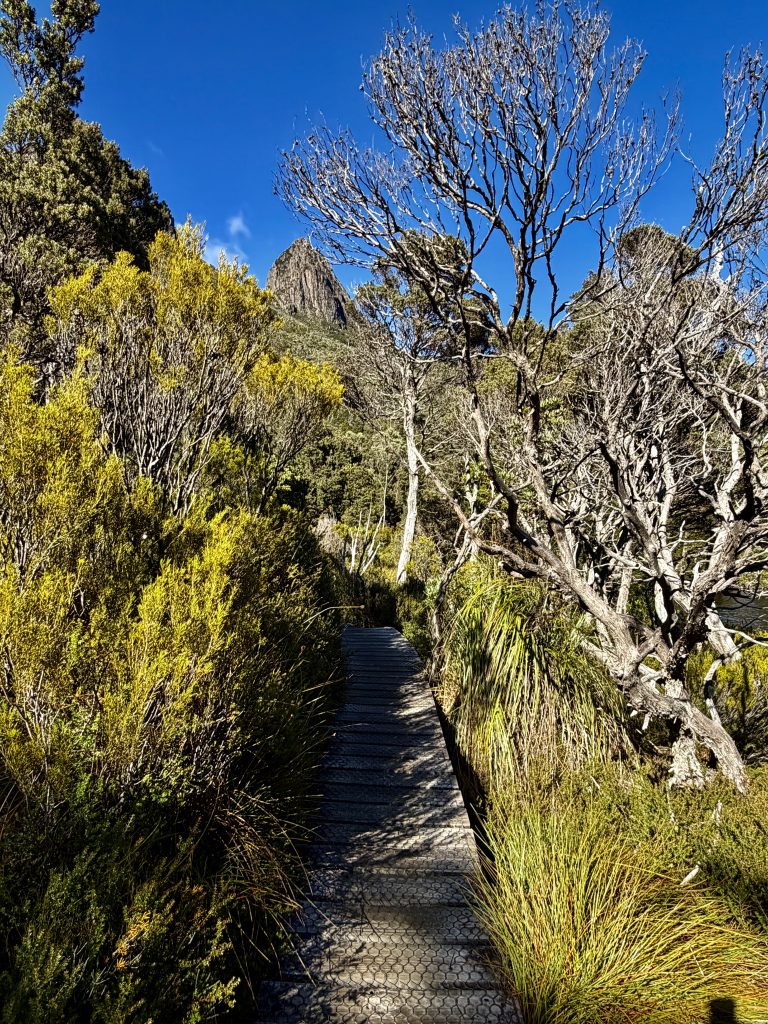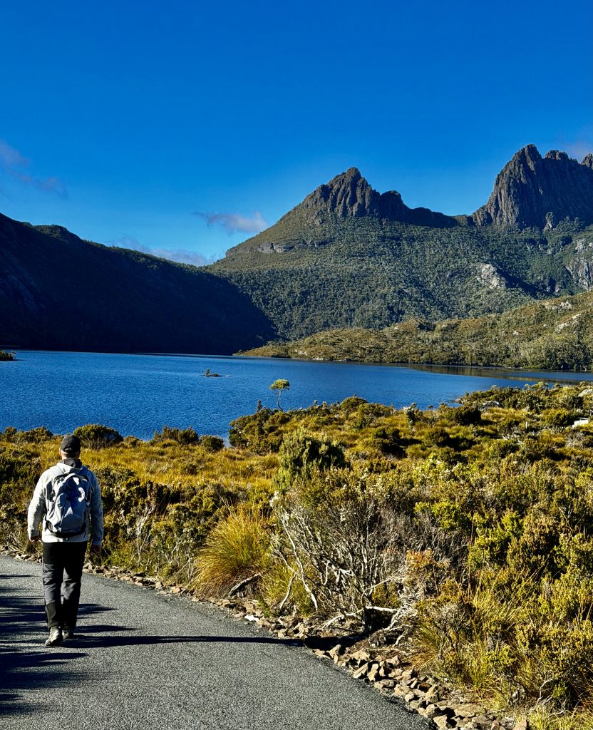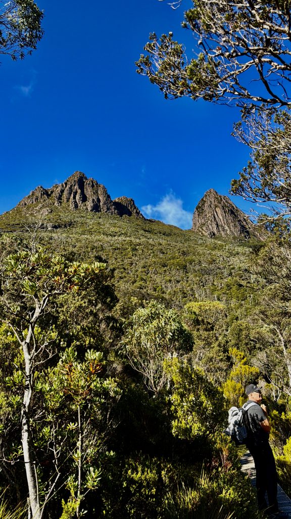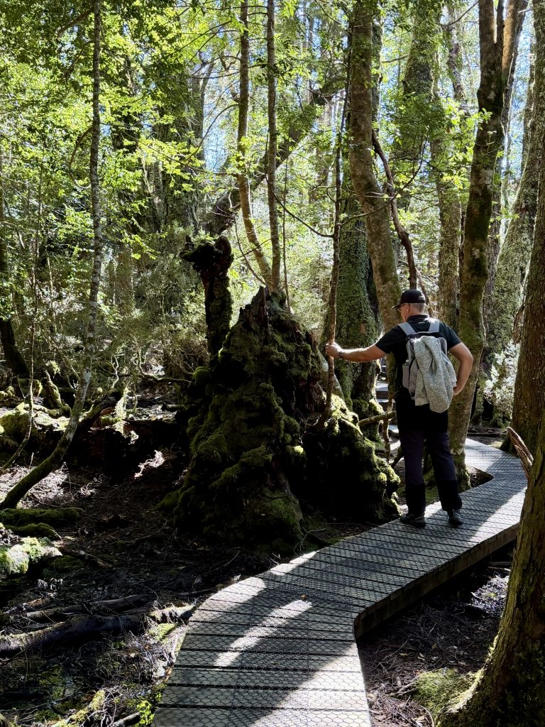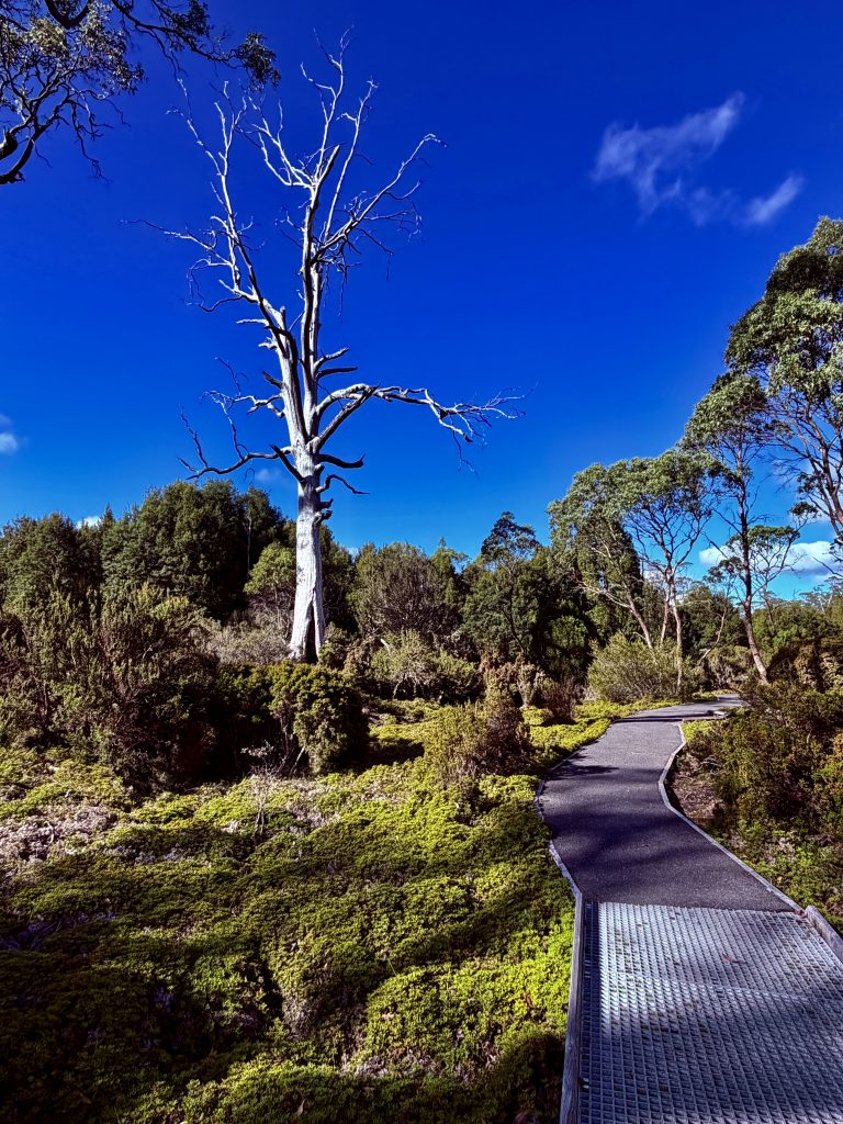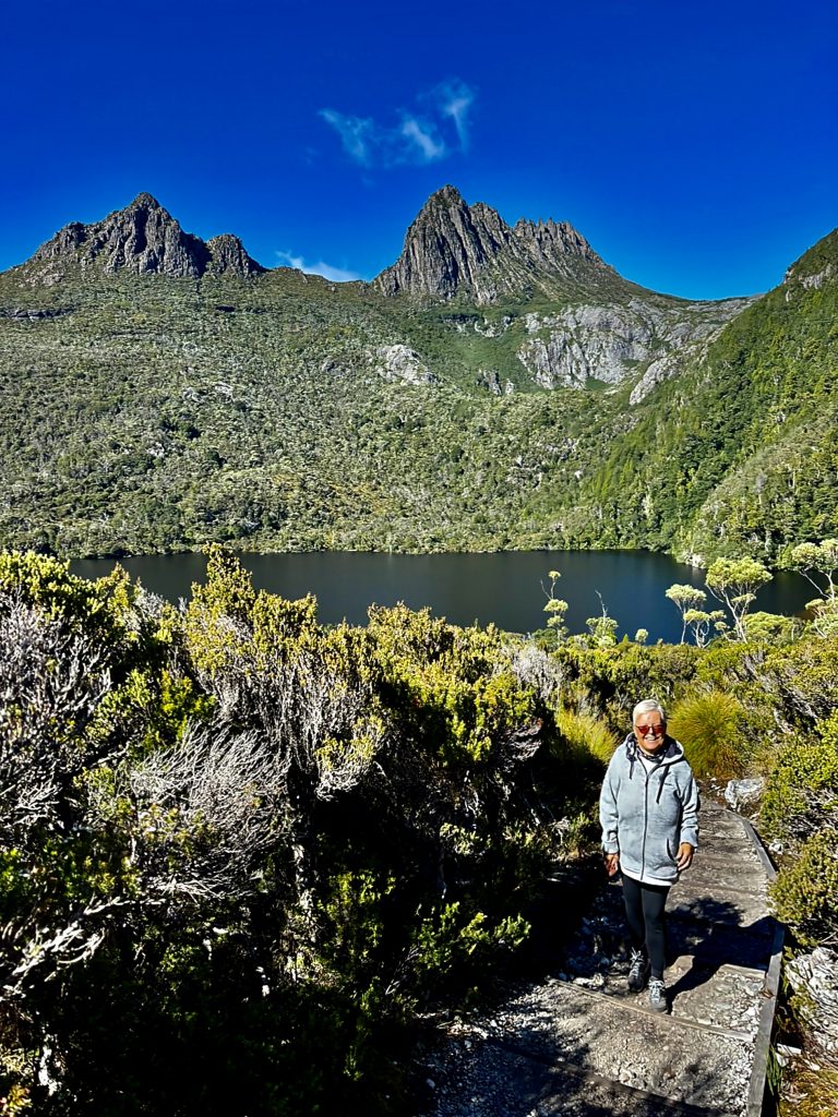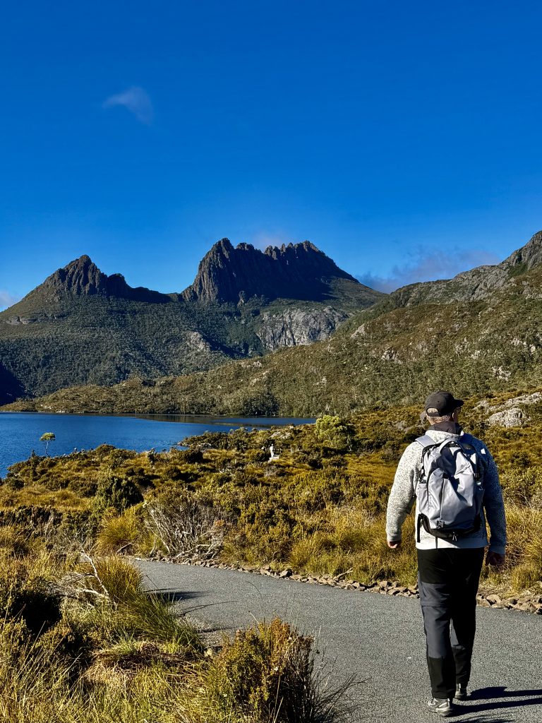 Schön war’s❣️ Und tatsächlich haben wir immer noch nicht genug für heute und laufen noch einen kleinen, schönen Wanderweg. Es gibt hier im Nationalpark so unendlich viele, tolle Möglichkeiten. Und wie es zu diesem Park überhaupt kommen konnte, ist auch eine schöne Geschichte. Ein Österreicher, Gustav Weindorfer, leidenschaftlicher Botaniker, wanderte 1900, mit 26 Jahren nach Australien aus. Er ließ sich in Tasmanien nieder und lernte 1906 Kate Cowle kennen, eine naturverbundene, unabhängige Tasmanierin, 11 Jahre älter als er. Sie verliebten sich, heirateten 1909 und verschrieben sich dem Ziel, das Gebiet um den Cradle Mountain zum Nationalpark werden zu lassen. Als Kate ihm das Bergmassiv und die wilde, atemberaubende Natur ringsum zeigte, war es um ihn geschehen, und die Vision eines „Nationalparks für das Volk, für alle Zeiten“, wurde ihr Lebensinhalt. Eine Liebe zwischen zwei Menschen und deren Liebe zur Natur, machte sie zu geduldigen Kämpfern für ihr Ziel. Sie errichteten ihr „Waldheim Chalet“