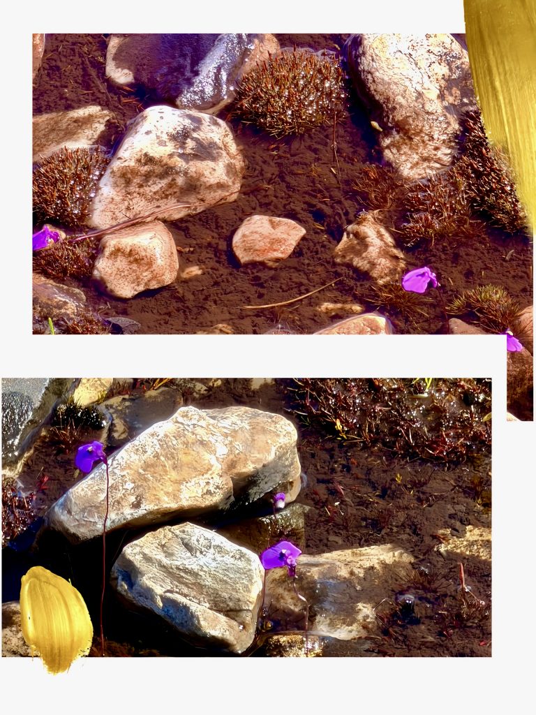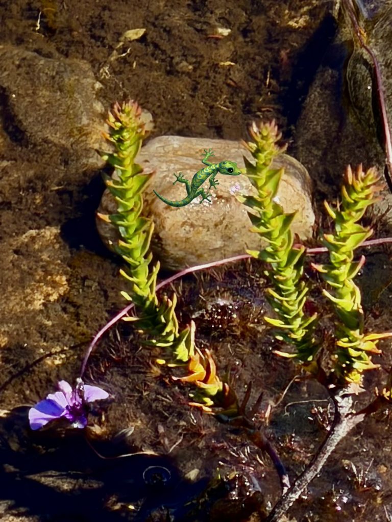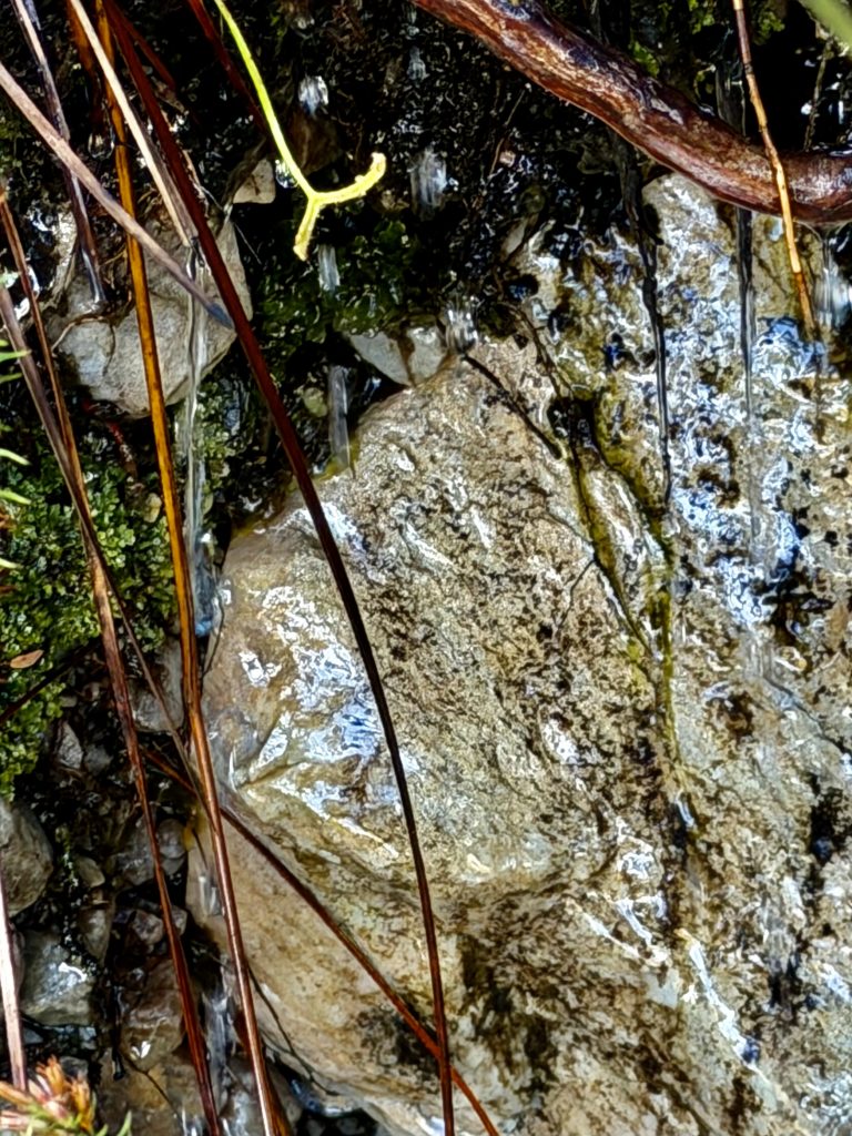 Und alle paar Meter gurgelt ein Bächlein aus dem Gestein. Also an Wasserknappheit leidet diese Region gerade nicht.