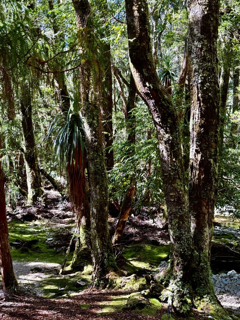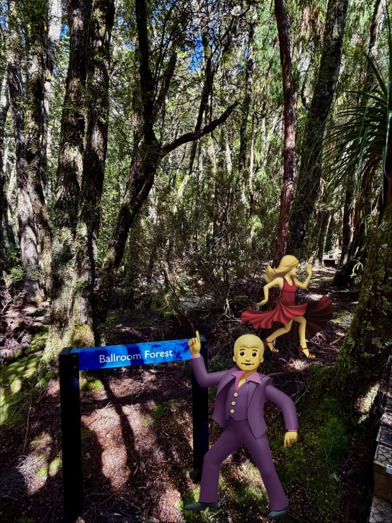 Also, getanzt wird da nicht. Vielmehr sollen die vielen, geraden, alten Bäume, ohne wilden Bewuchs am Boden, wie ein stiller, mystischer Tanzsaal wirken. Ah so! Das kann ich jetzt hier und heute nicht ganz nachvollziehen, haben aber frühere Siedler und Ranger so gesehen. Okay.