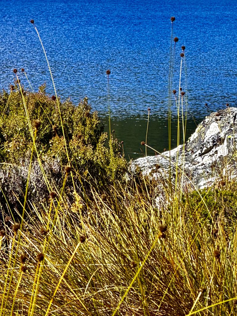 Es geht nun auf der anderen Seeseite zurück und ein längeres Stück kräftig bergauf. Oben schnappen wir uns sofort die erste lange Bank und lassen die anderen, die nun deutlich mehr geworden sind, schnaufend an uns vorbeiziehen.