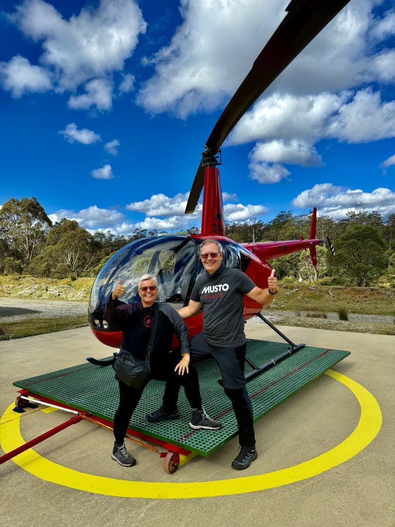 Kurze Verdauungspause in unserer Lodge, dann geht es auf zum Flugplatz. Keine weitere Absage hat uns erreicht, also scheint der Heli mit uns abzuheben. 🚁